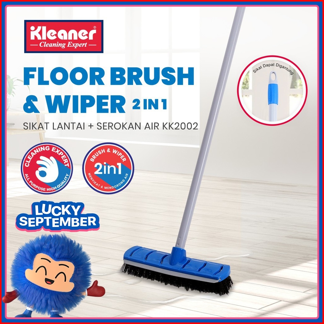 Kleaner Sikat Lantai Dengan Serokan Air 2 In 1 Gagang Panjang Floor Brush Pembersih Lantai Kk2002