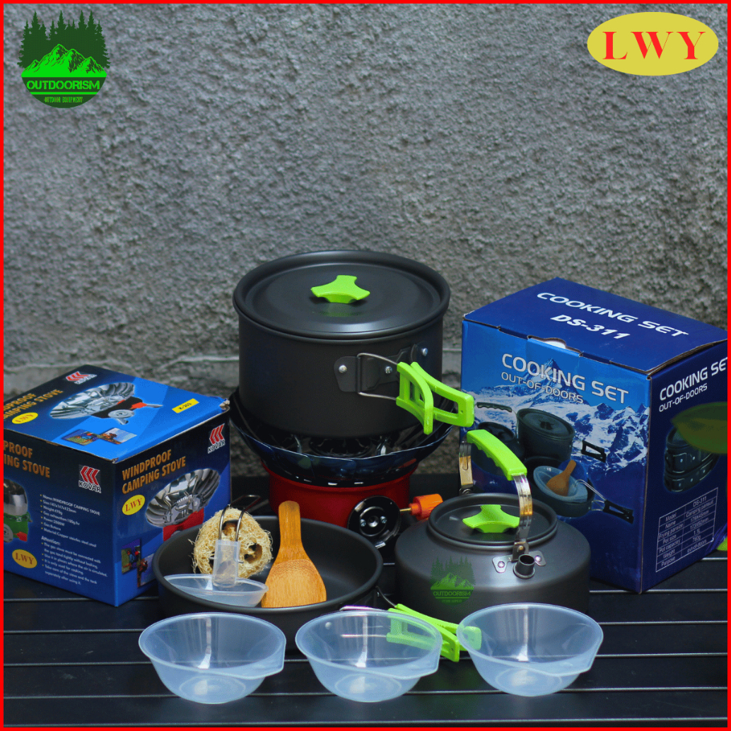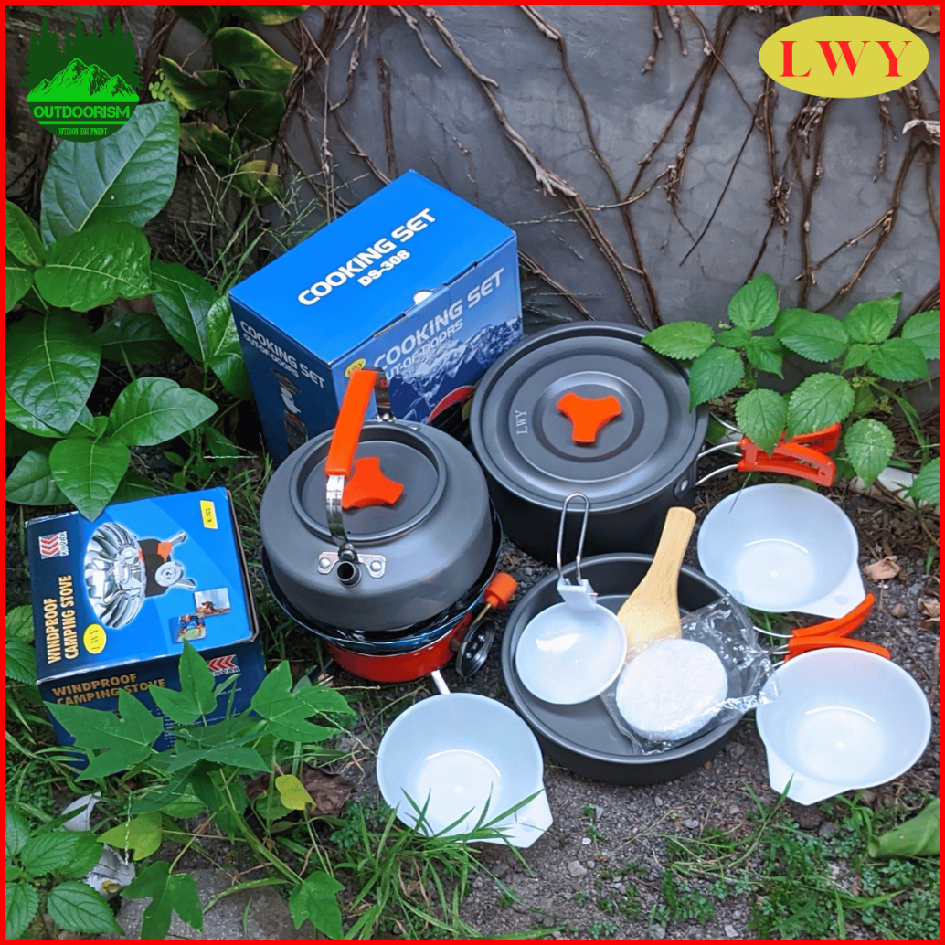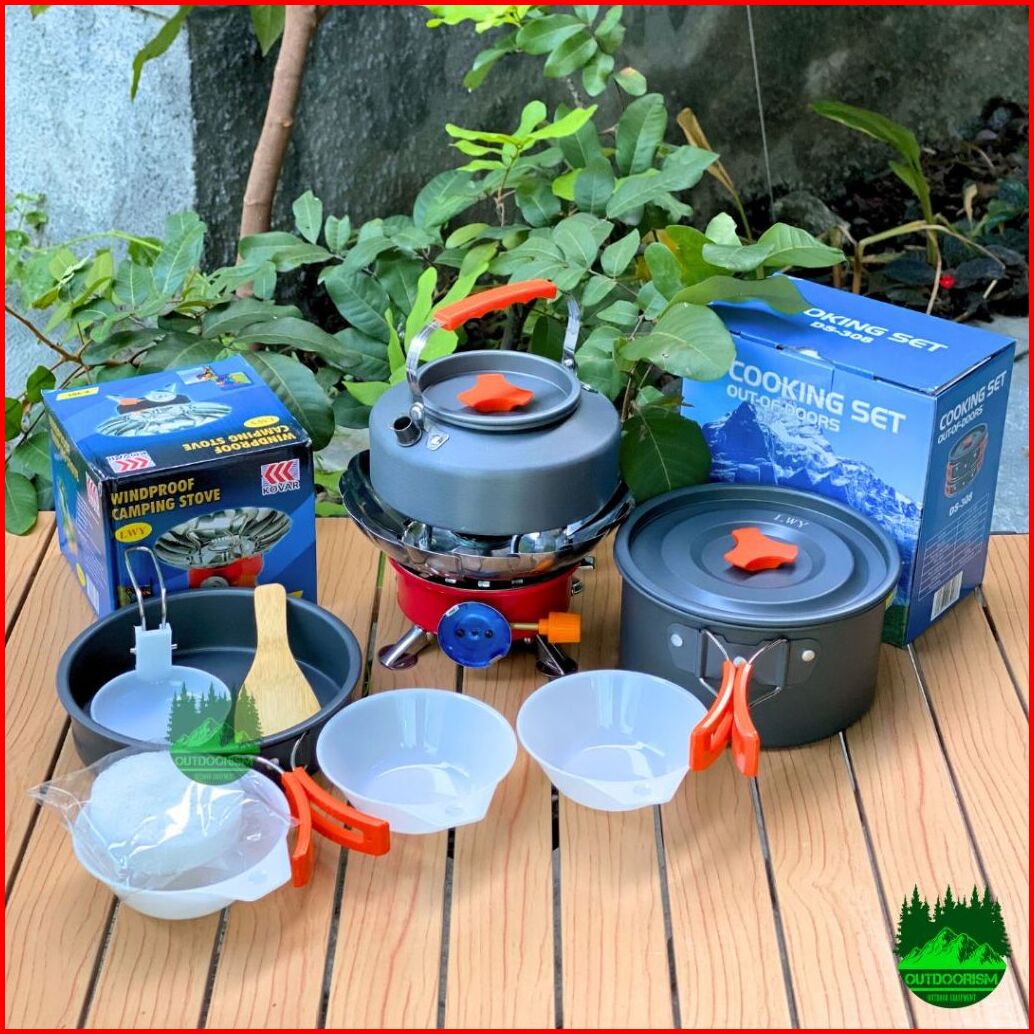 Outdoorism Paket Hemat Cooking Set Kompor Camping Portable Alat Masak Camping Portable