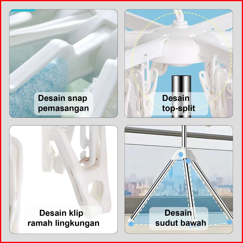 Jemuran Menara 3 Tingkat - 24jepitan Baju - 16 Jari-jari Gantungan Baju