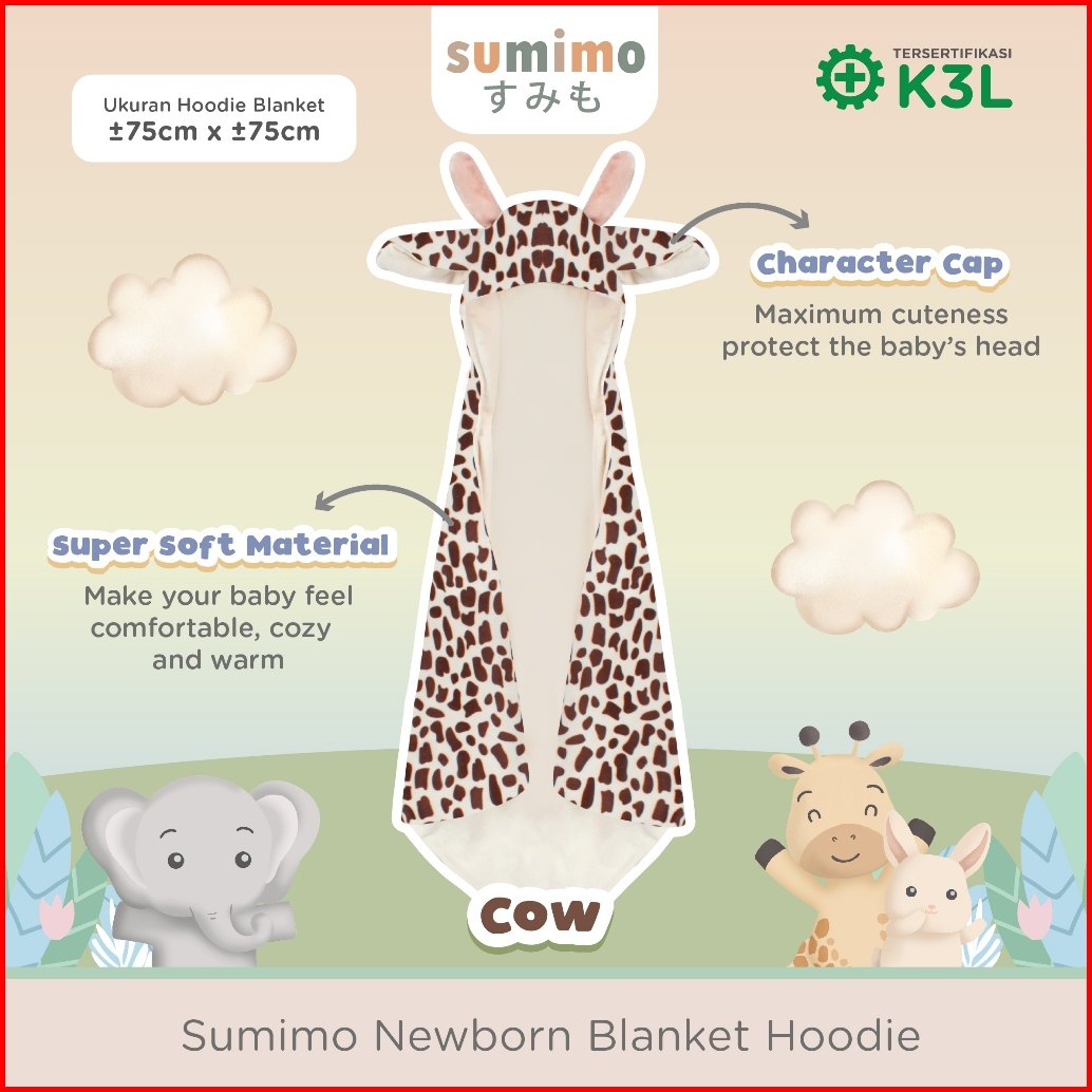 Sumimo Blanket Hoodie Baby Selimut Topi Bayi Karakter Lucu Super Soft Cow