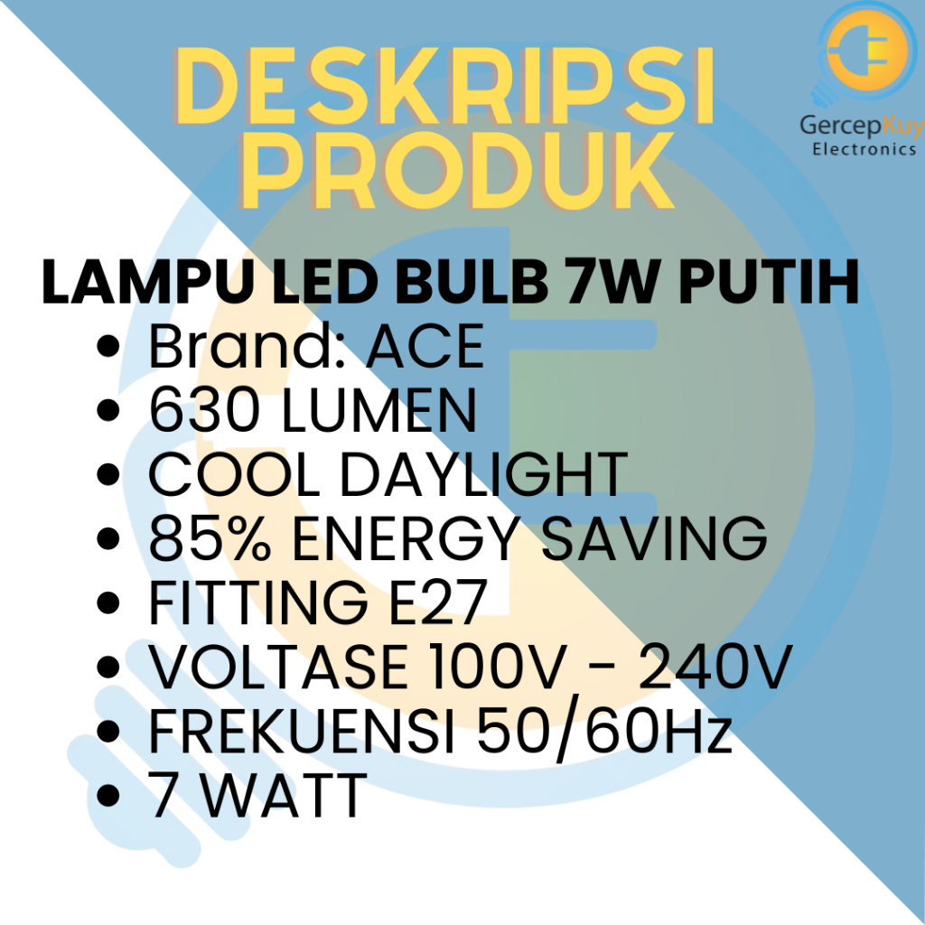 LAMPU LED BULB ACE PUTIH 7W 7WATT PUTIH E27