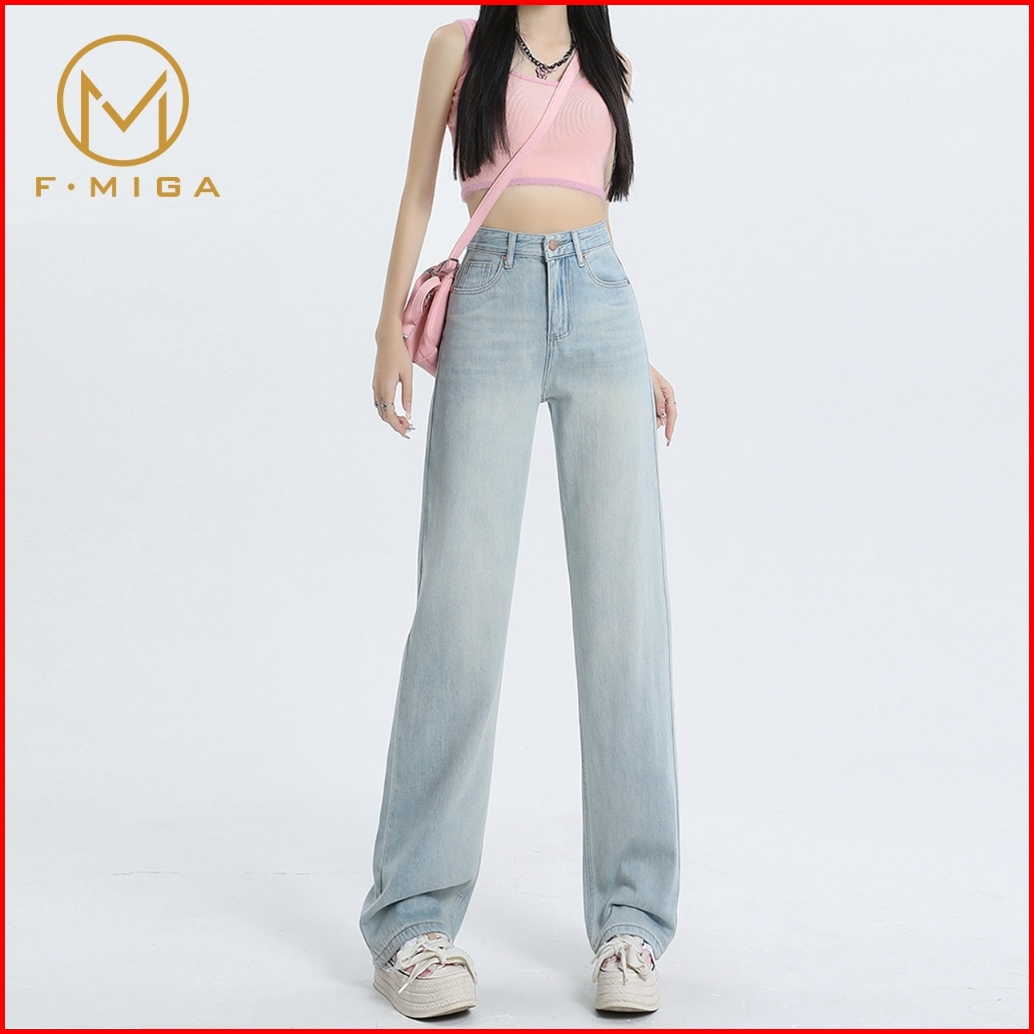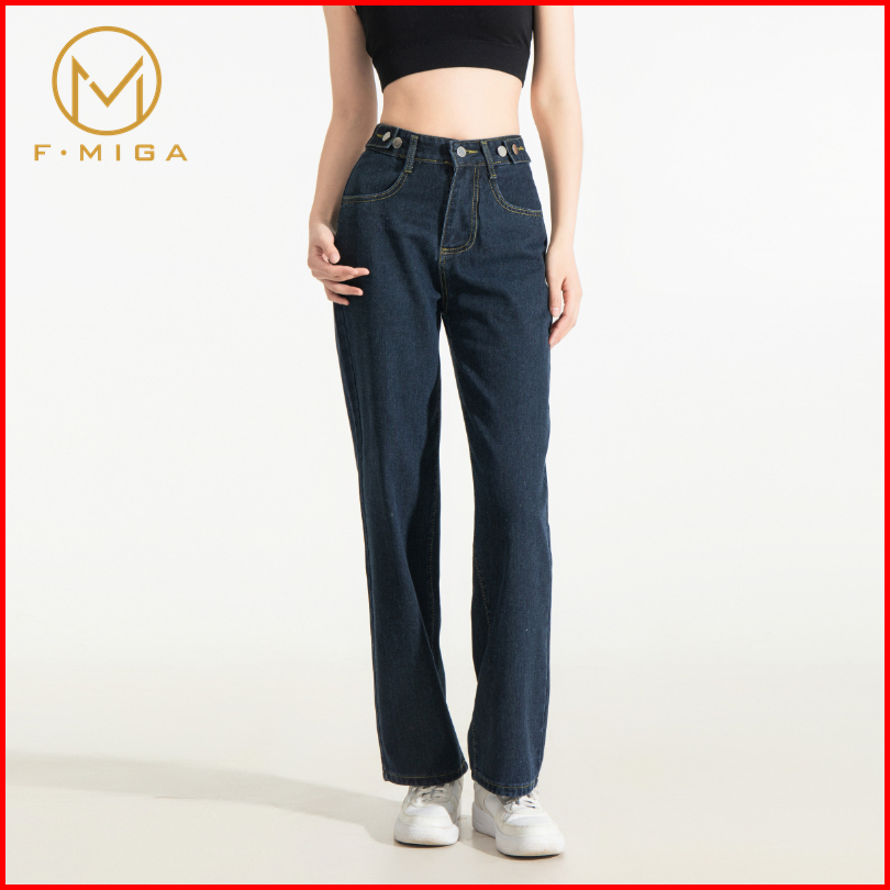F Miga C56 Korean High Waist Straight Bagy Wanita Jeans - Biru