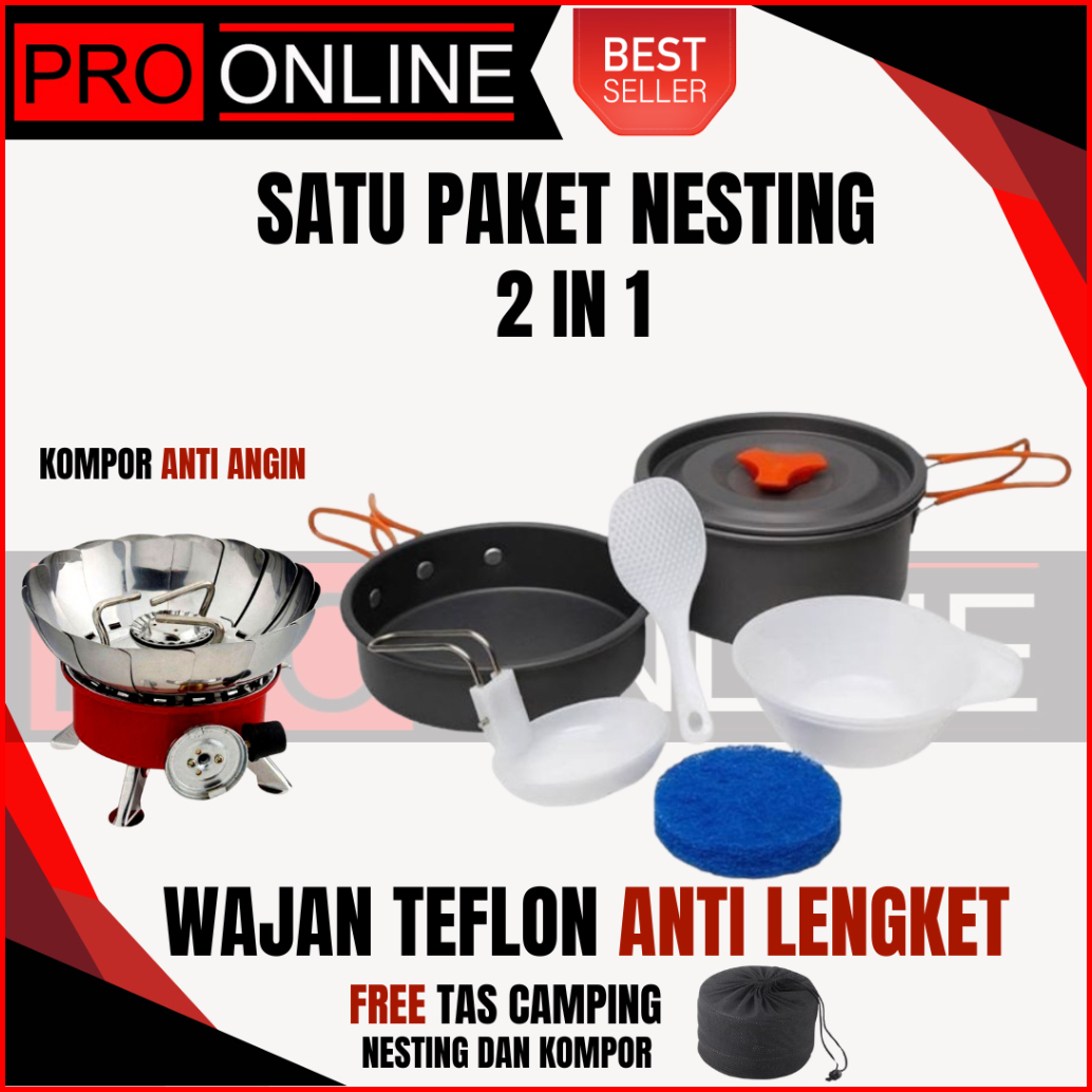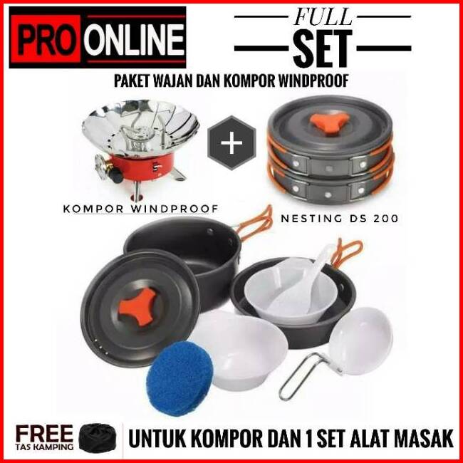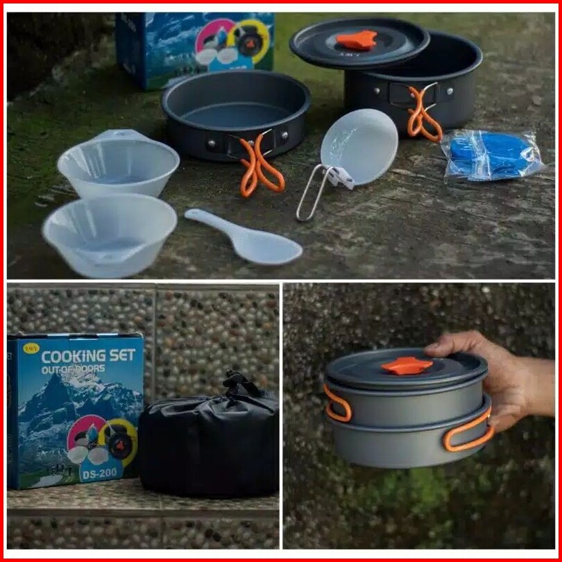 Alat Masak Cooking Set Ds200 End Stove Camping Windproof K203 Panci Dan Kompor Kemping Outdoor