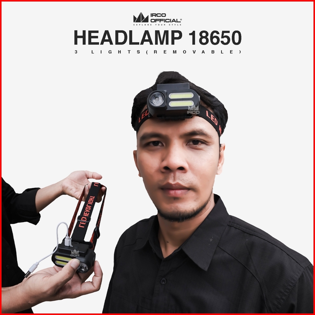 Irco Headlamp Outdoor Waterproof Free Baterai 18650 - Senter Kepala Anti Air Super Terang Tahan Lama