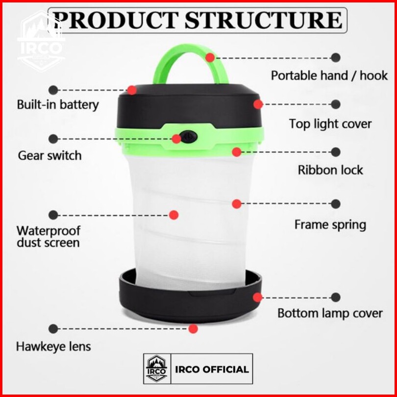 Irco Lampu Tenda Camping Outdoor Lentera Gantung Baterai Tahan Lama - Emergency Lamp 3 Mode Cahaya