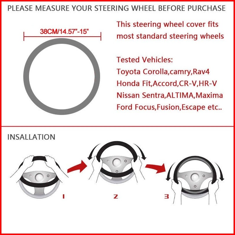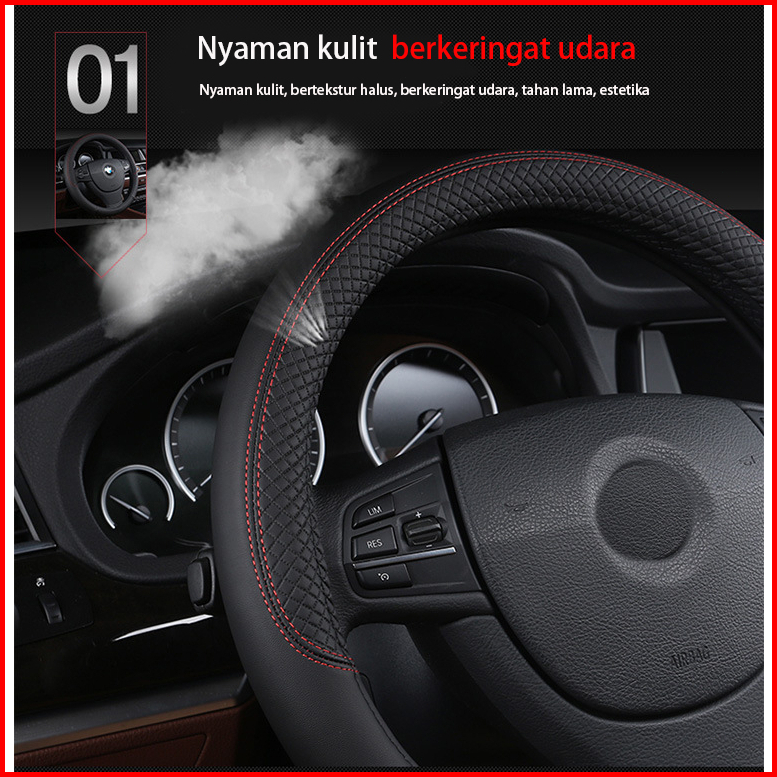 Sarung Setir Mobil Cover Stir Mobil Bahan Kulit Toyota Bahan Kulit Original Hitam Merah Universal Sarung Stir Mobil