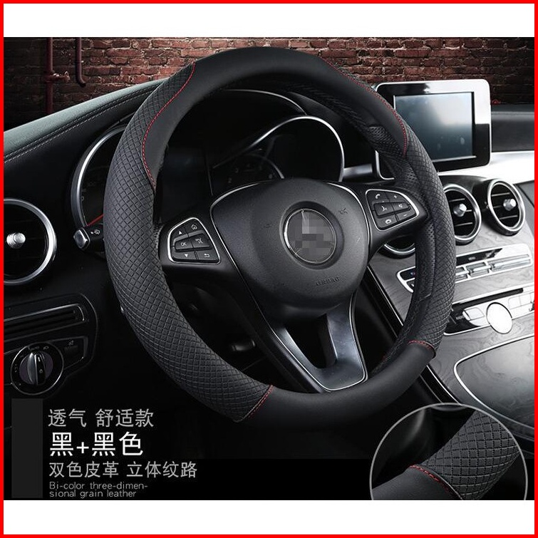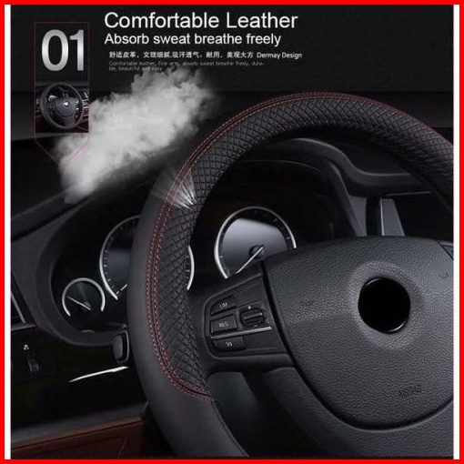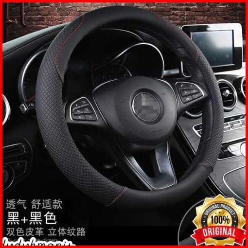 Cover Stir Mobil Bahan Kulit 38cm Sarung Setir Mobil Anti Slip 38 Cm Hitam Lembut