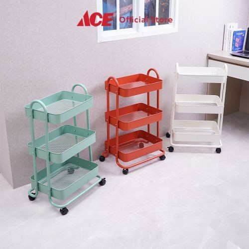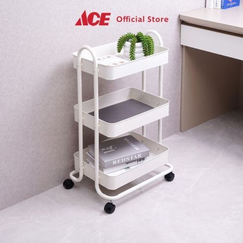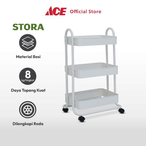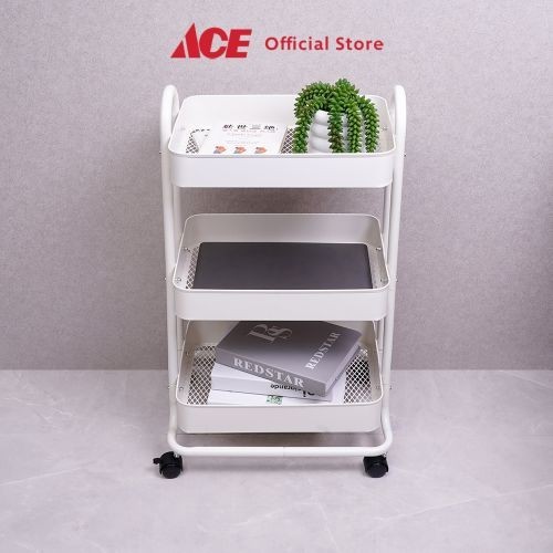 ACE STORA 46X34X76 CM RAK TROLI 3 TINGKAT PUTIH TEMPAT PENYIMPANAN MULTIFUNGSI DENGAN RODA