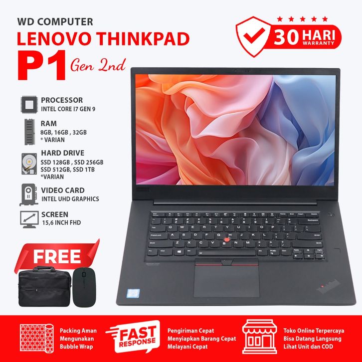 Lenovo Workstation P1 Gen 2 Core I7 Gen 9 I Ram 32 Gb Ssd 512 Gb NVME I Laptop Kerja Design