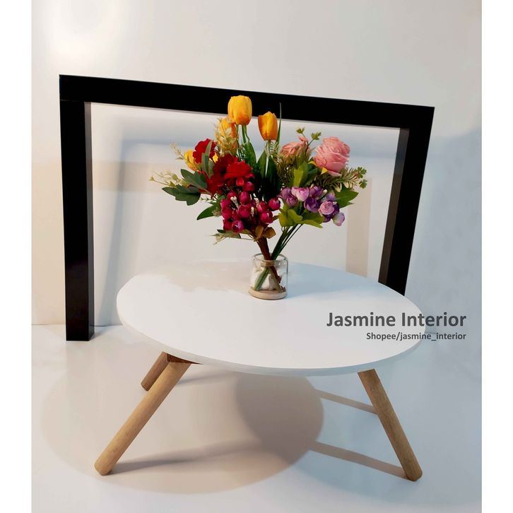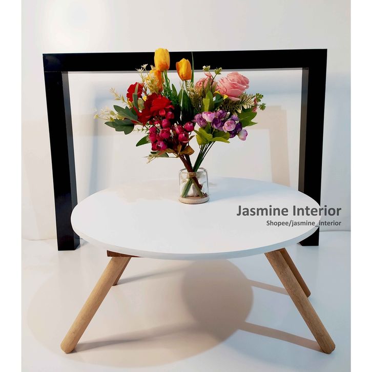 Meja Bulat Minimalis Meja Ruang Tamu Meja Lipat Murah Meja Lipat Bulat Milenial Diameter 55cm