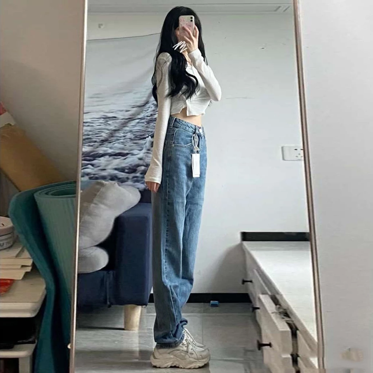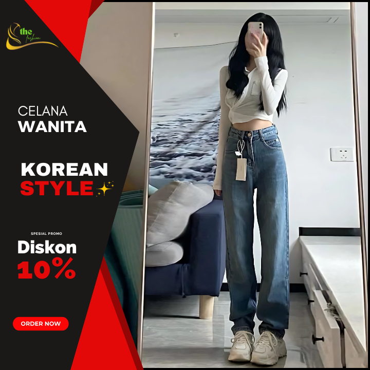 Celana Jeans Wanita Style Korea New korean style high waist loose murah celana jeans panjang wanita