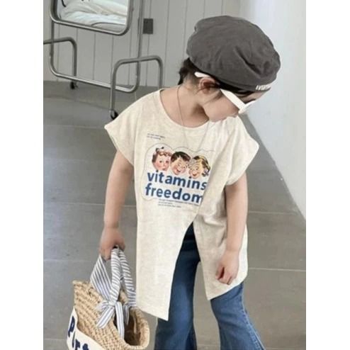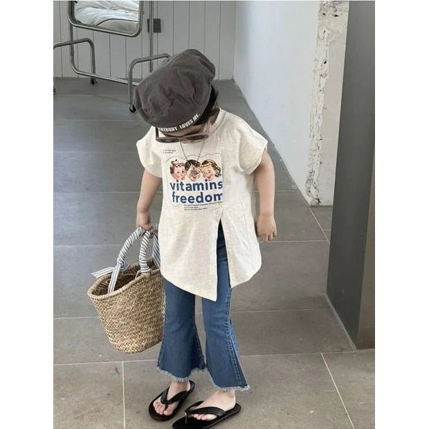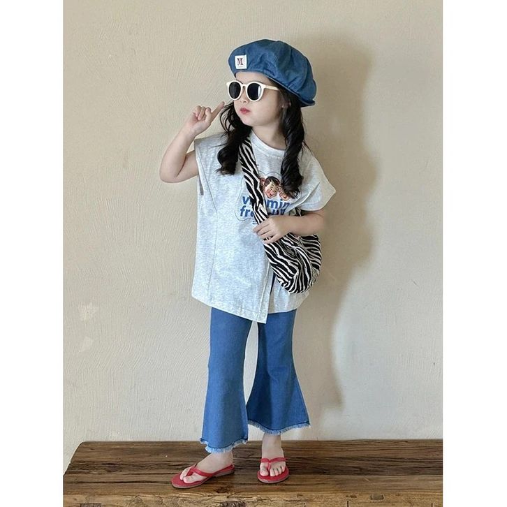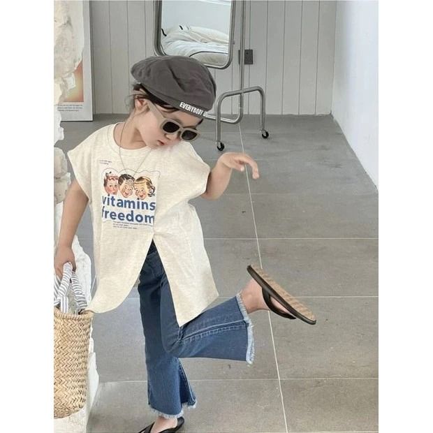 ONESET STYLE SET ANAK CEWEK SETELAN ANAK PEREMPUAN T-SHIRT BELAH SAMPING + CELANA JEANS 2-8THN KOREAN