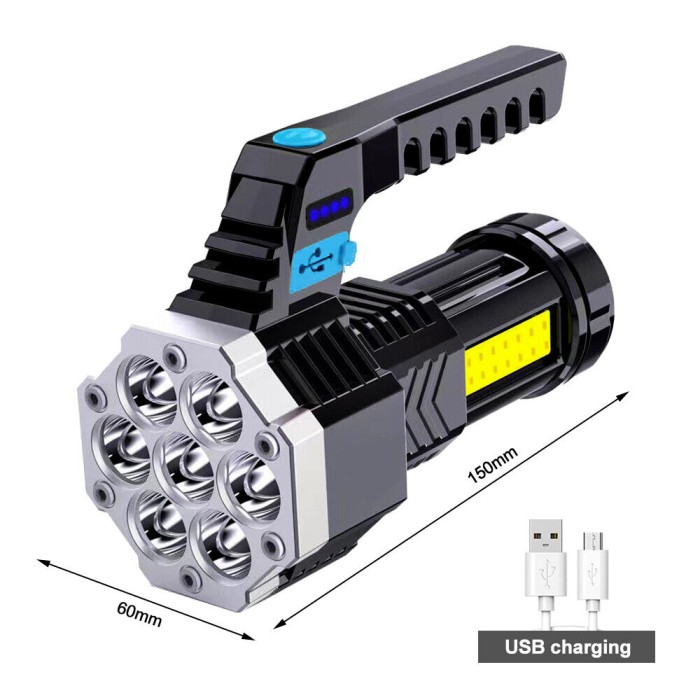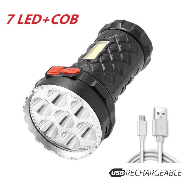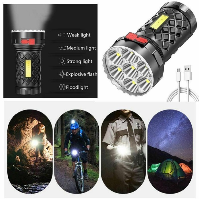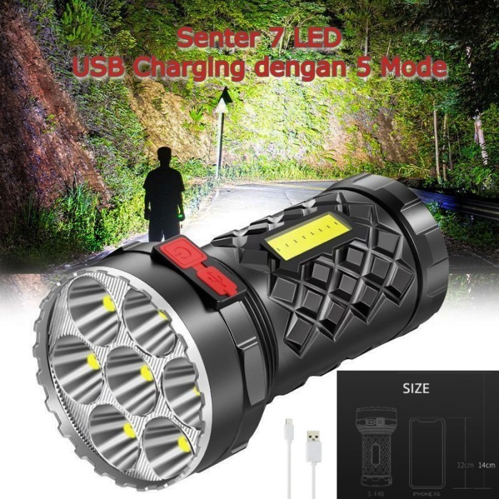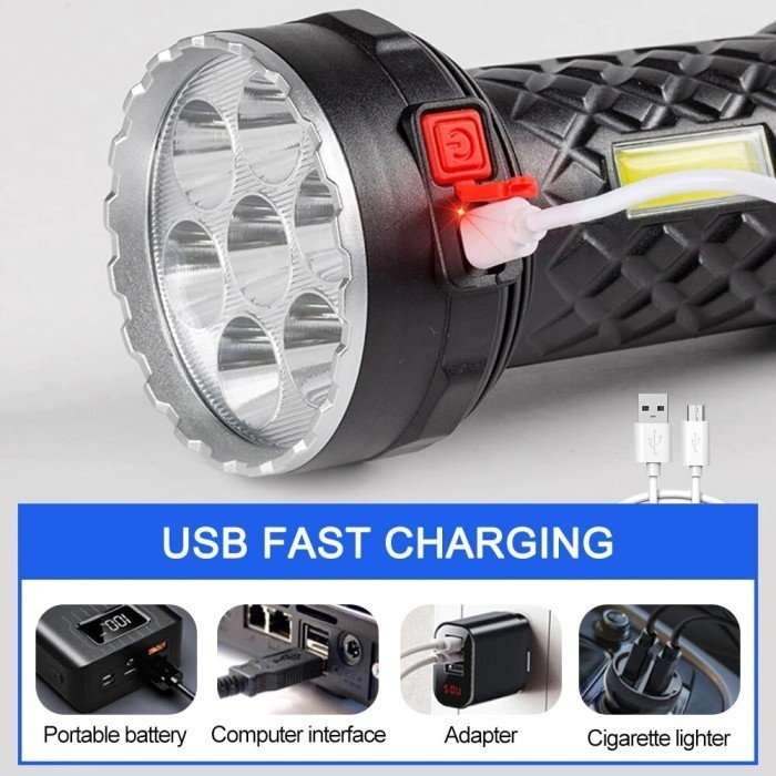 SENTER SUPER TERANG 7 LED RECHARGEABLE DENGAN LAMPU COB SAMPING 4 MODE - 7 LED GAGANG