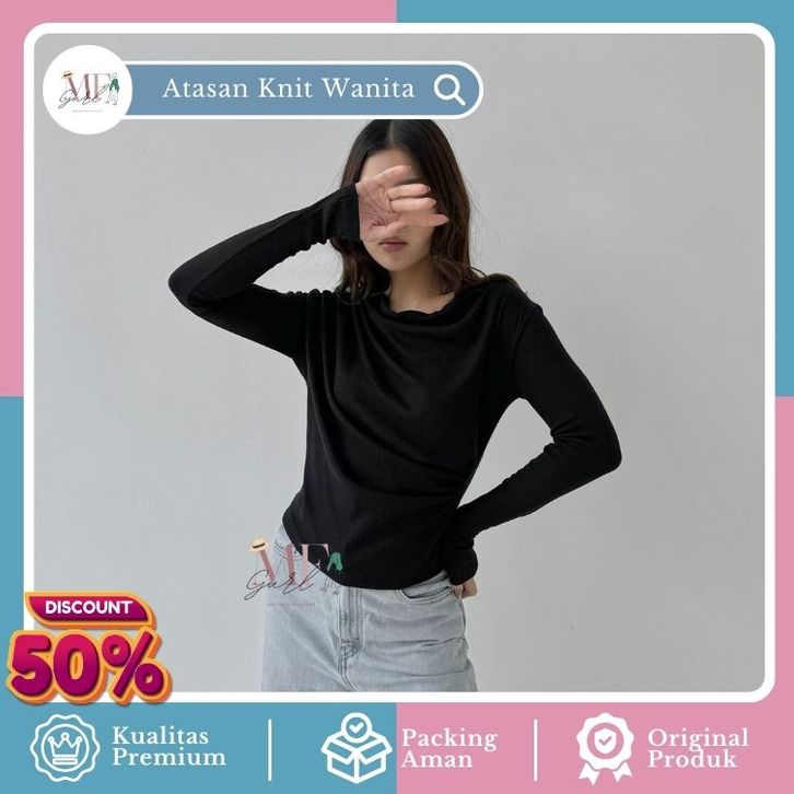 Atasan Knit Wanita Korean Top Baju Knit Wanita Lengan Panjang Basic Long Sleeve Kekinian Highly Recommended Terlaris