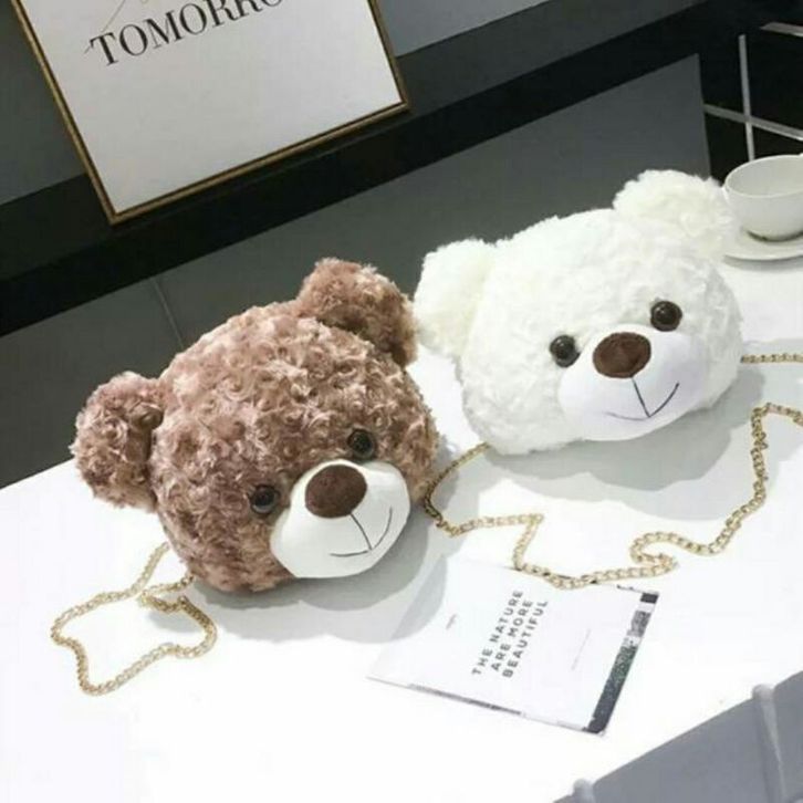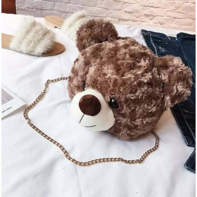 Tas Selempang Wanita Bulu Tas Teddy bear Bahu Tas Tali Rantai Bulu Snail Korea Tas Boneka Tas Handphone Tas Boneka Cakep