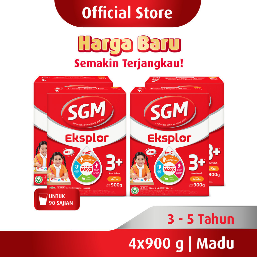 SGM EKSPLOR 3+ DENGAN IRONC SUSU BUBUK RASA MADU 900GR X 4