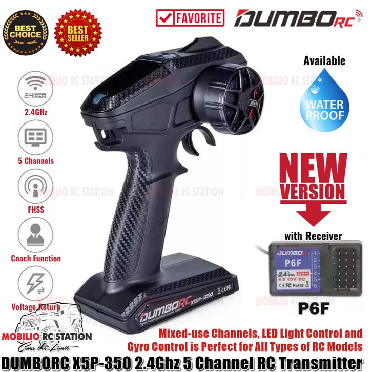 Dumborc X5 2.4Ghz 5 Channel RC Transmitter with Receiver P6F Waterproof Version Available for RC Car Boat Tank All Types