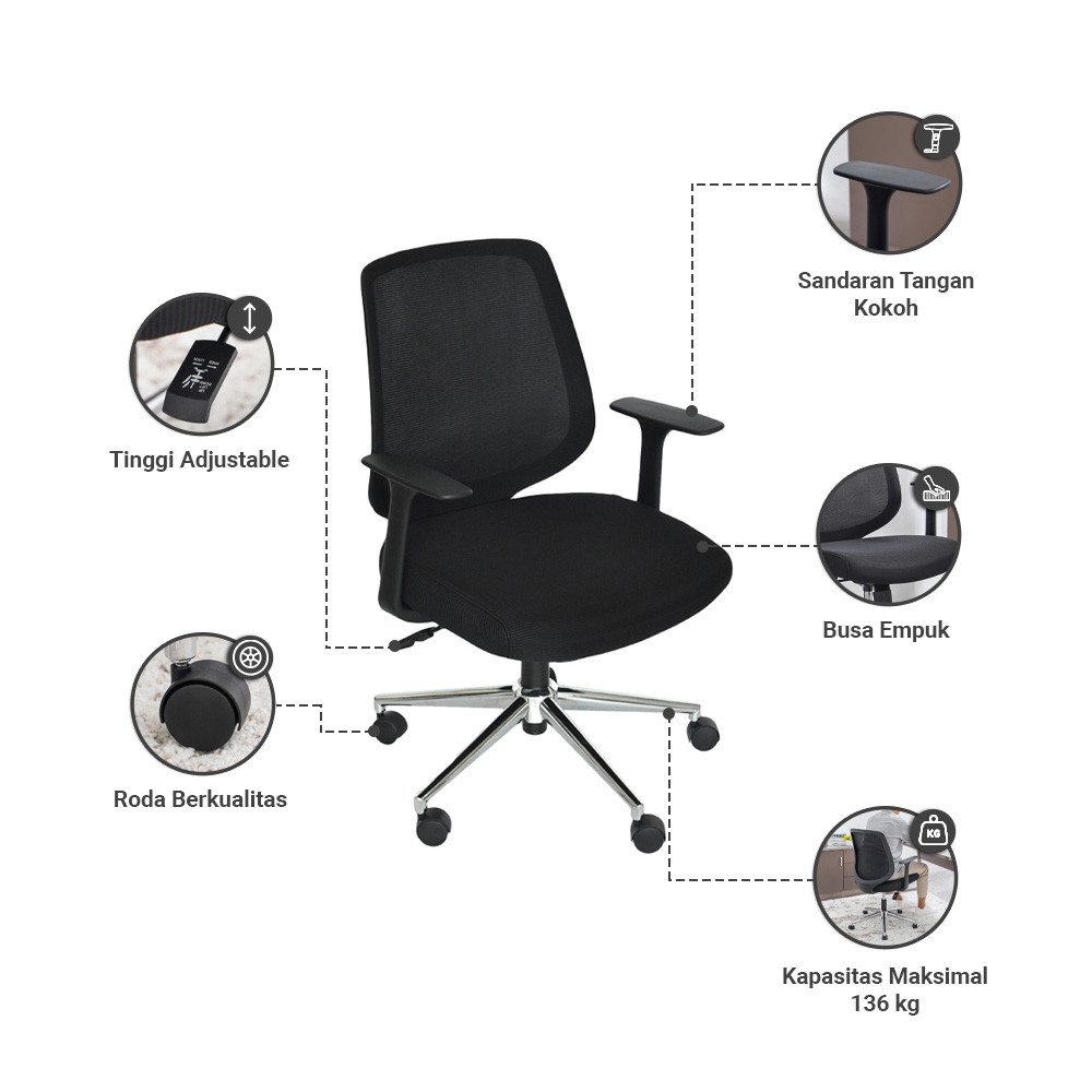 INFORMA SUNON SHIELD KURSI KANTOR SANDARAN RENDAH HITAM TEMPAT DUDUK KERJA DENGAN RODA