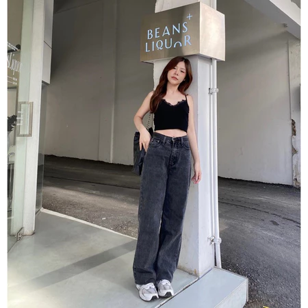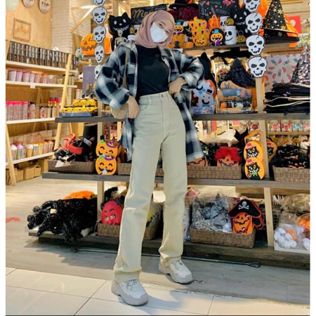 Celana Jeans Wanita Korean style Highwaist Kulot Jeans Wanita Loose