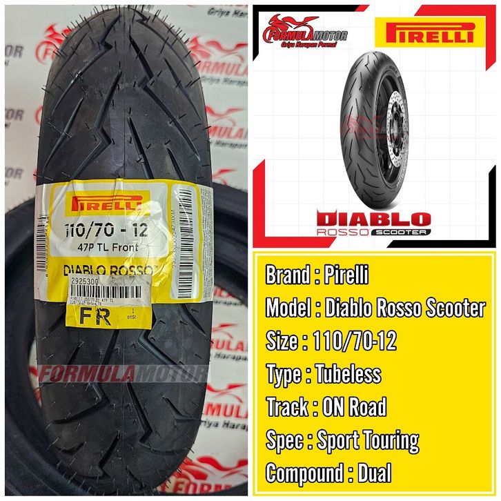 Pirelli Diablo Rosso Scooter Uk 110/70-12 Tubeless - Ban Luar Motor Vespa Fazzio Grand Filano Ring 12