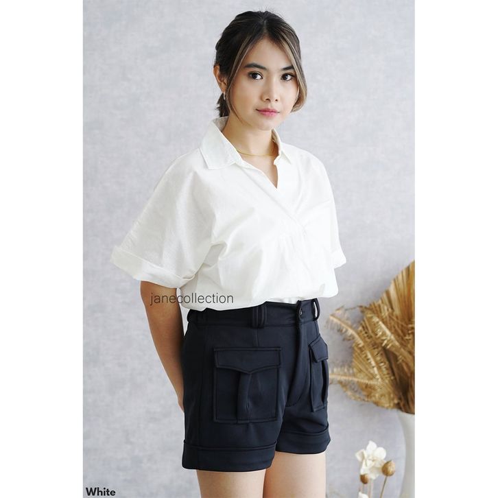 Kemeja Kerja Wanita Kemeja Wanita Basic Polos Lengan Pendek Oversize Kemeja Cewe Bahan Katun Premium Stylish Elegan