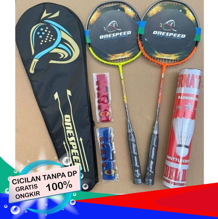 Raket Bulutangkis Langsungan Paket Lengkap Raket + Tas + Grip + Shuttlecock (Onespeed)
