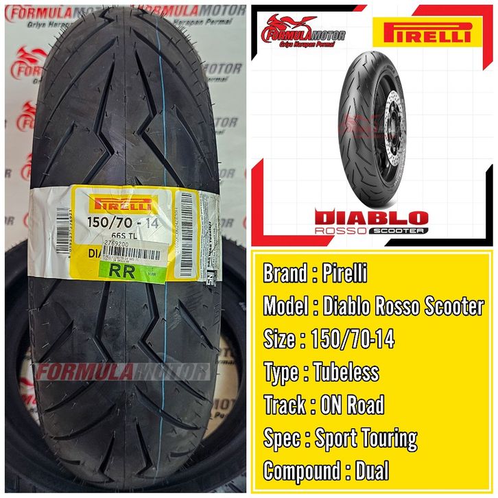 Pirelli Diablo Rosso Scooter Uk 150/70-14 Tubeless - Ban Luar Motor Xmax Aerox 14 Tubles