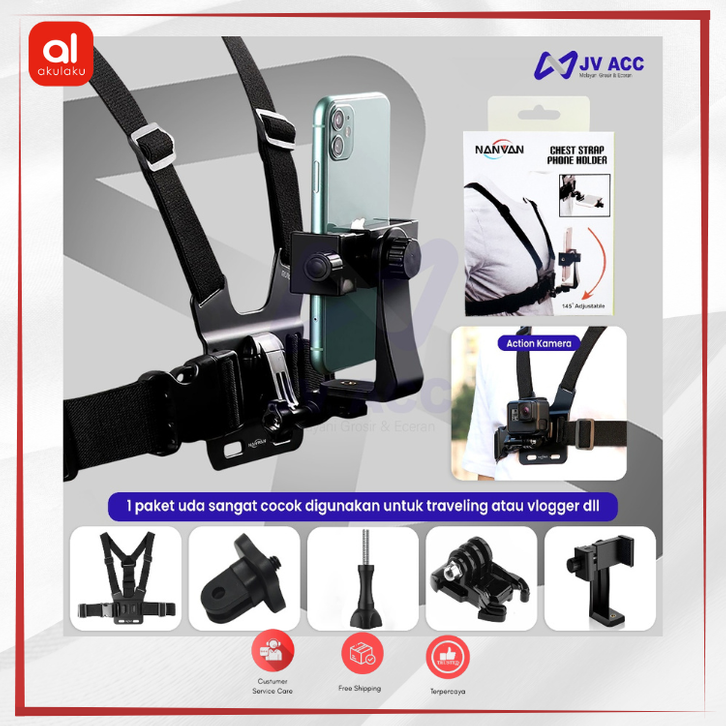 Paket Tali Strap Hp Chest Strap Phone Kamera Go Pro Holder Kamera Holder Hp Action Tali Dada Dudukan HP Holder HP Vloggi