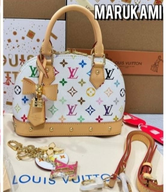 TAS LV ALMA X MRAKAMI MM KULIT ASLI MIRROR VVIP/TAS WANITA ELPONG 25CM/HANDBAG/SHOULDERBAG TAS BRANDED TERBARU