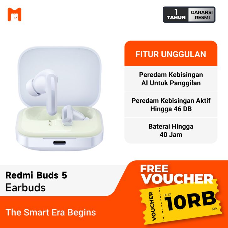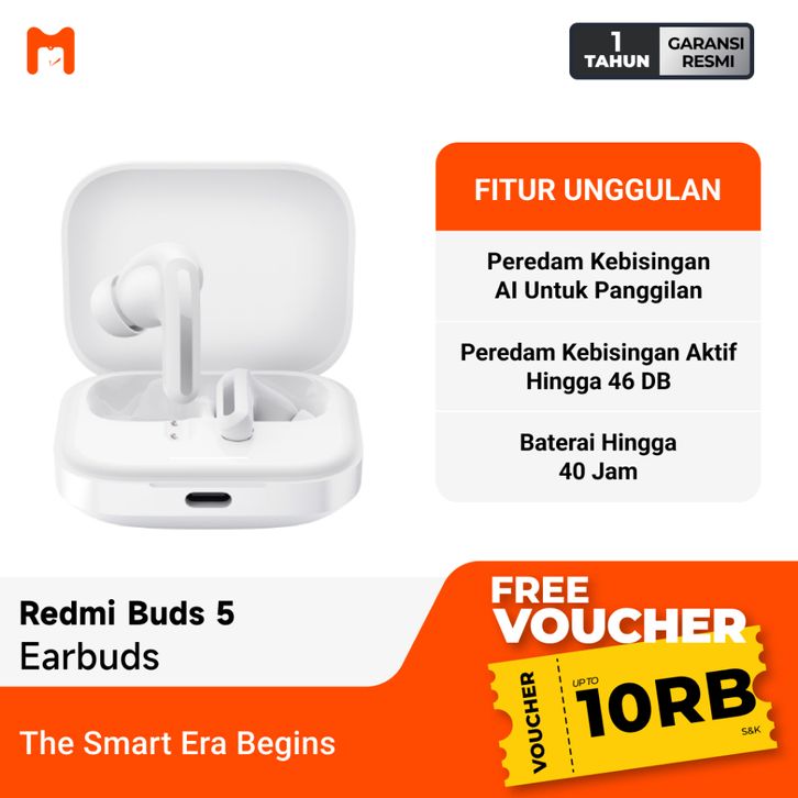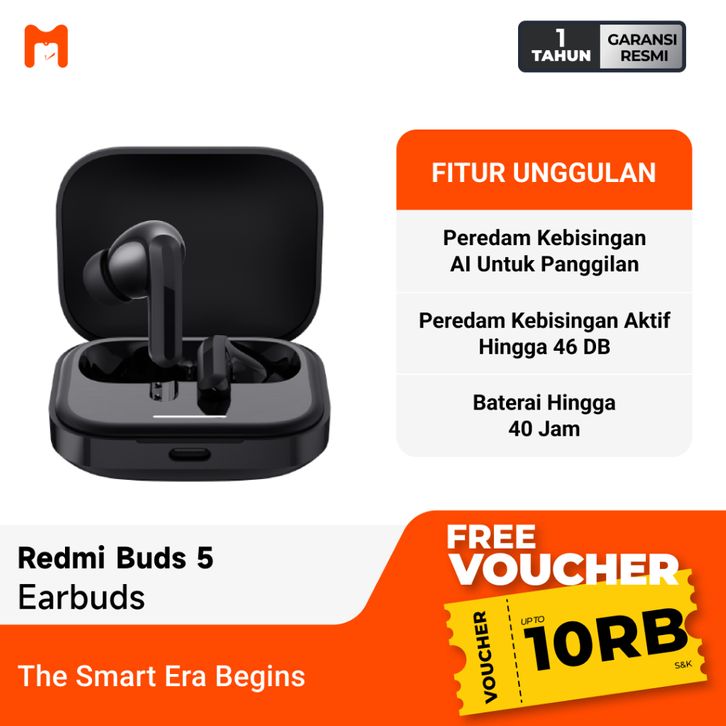 TWS BLUETOOTH REDMI BUDS 5 EARPHONE TWS BLUETOOTH 5.3 HEADSET BLUETOOTH TERMURAH