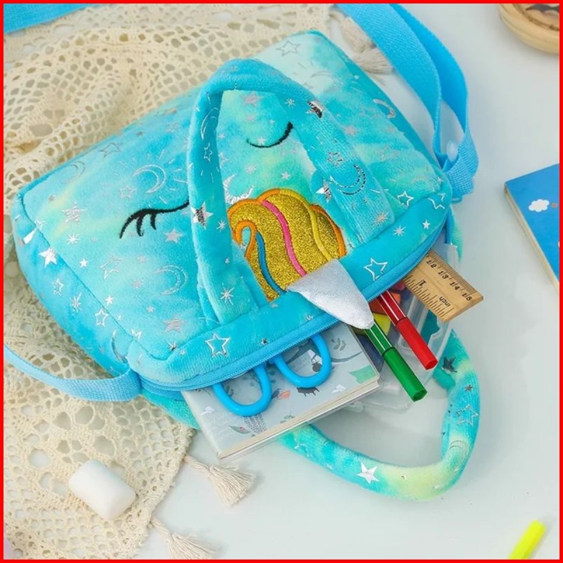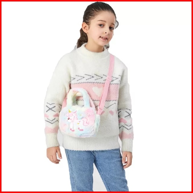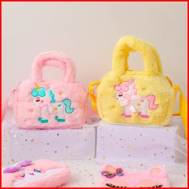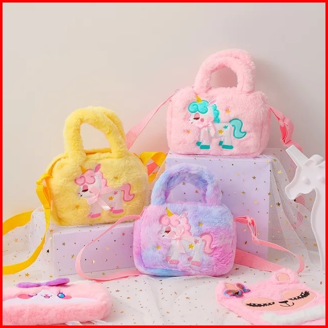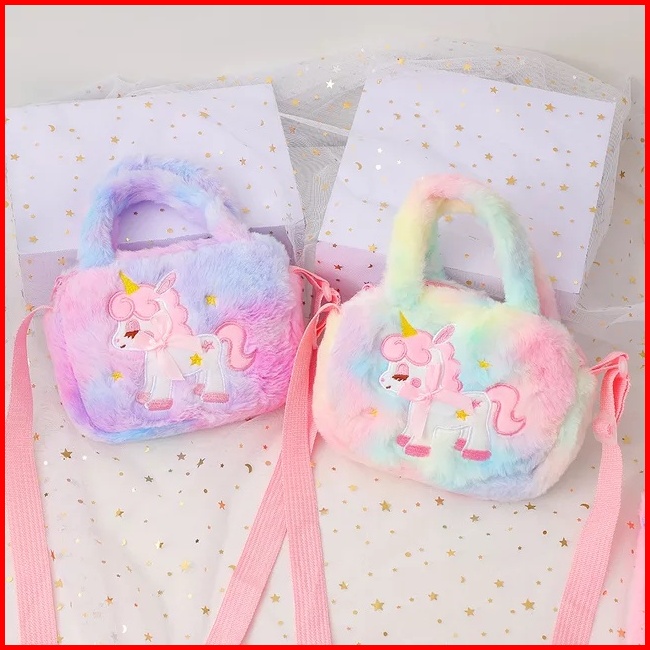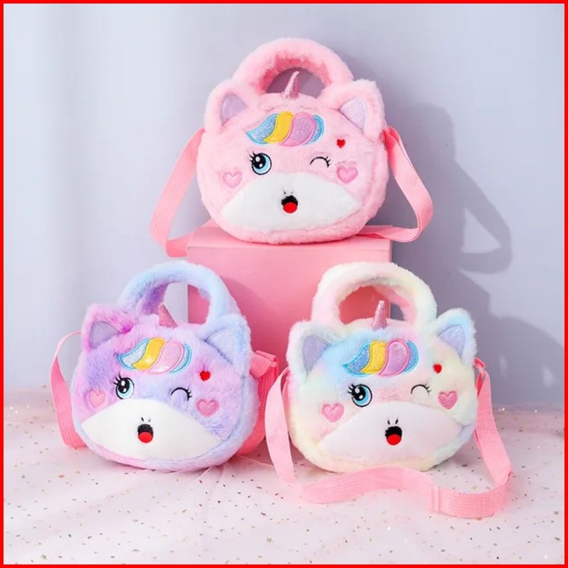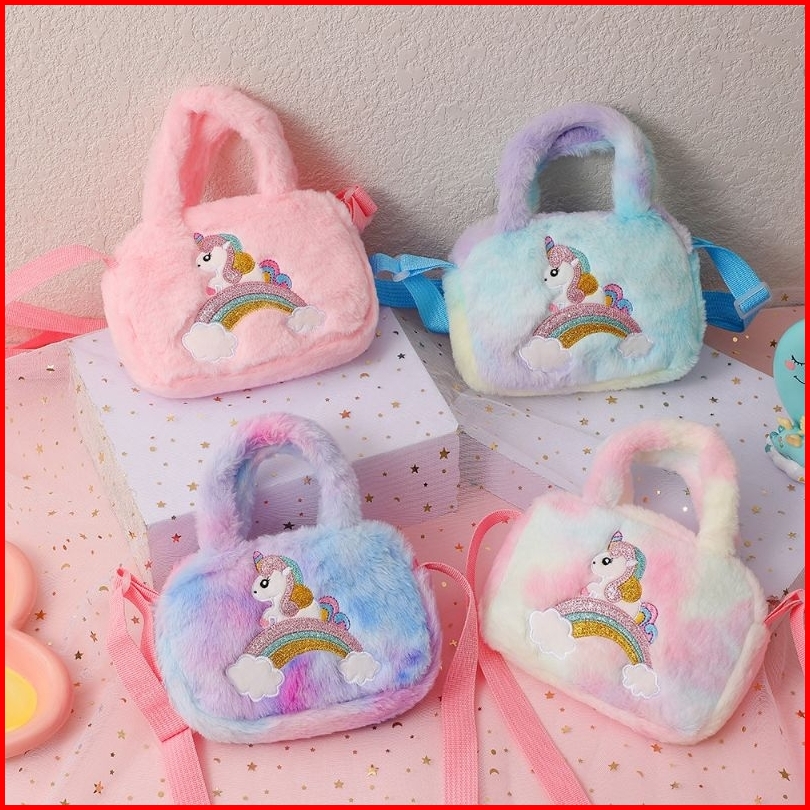 03 Tas Selempang Unicorn Bulu Anak Tenteng Uk 20 X 15 Cm