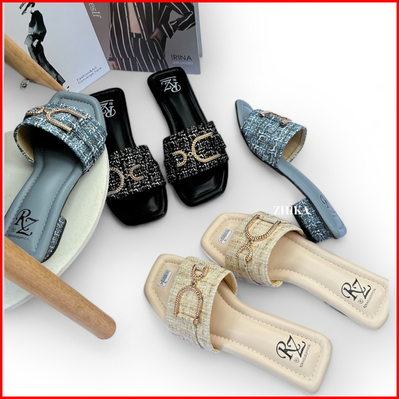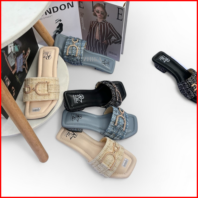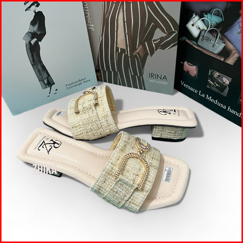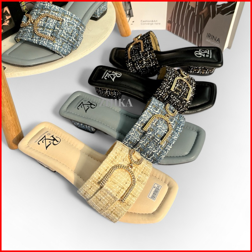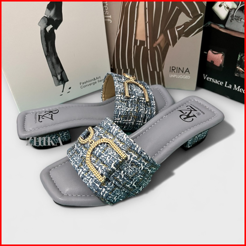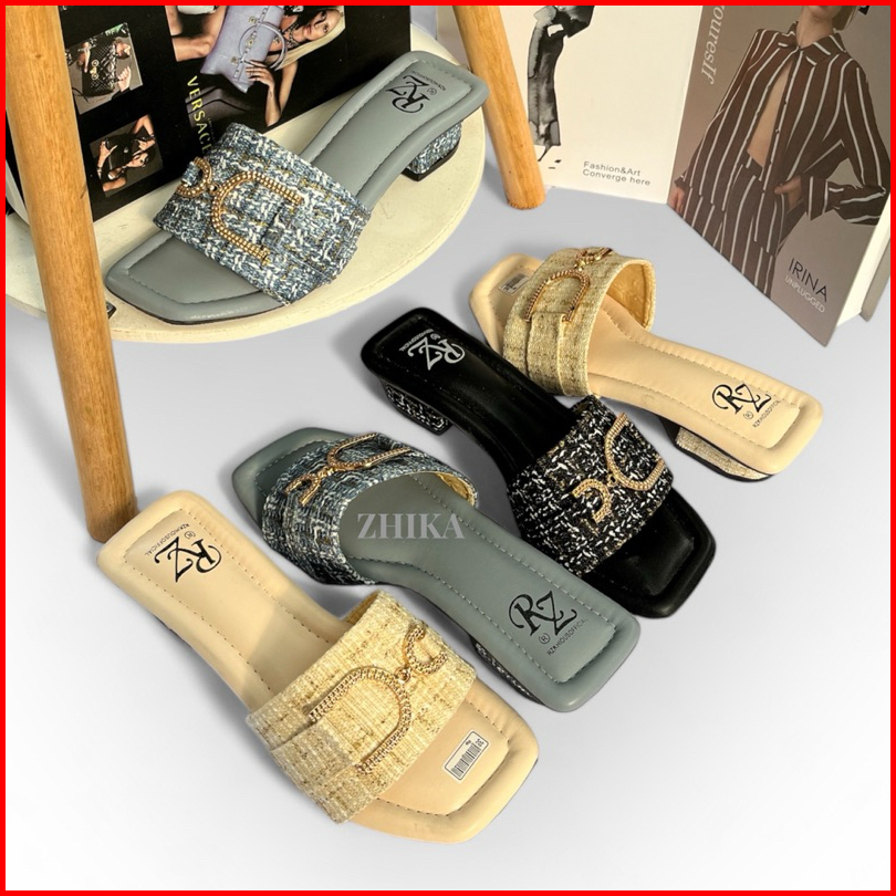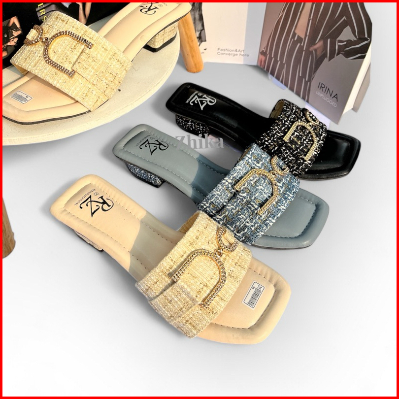 Nimue Sandal Wanita Heels 3cm Sendal Cewek Bahan Tweed Lucu Korean Style-nimue