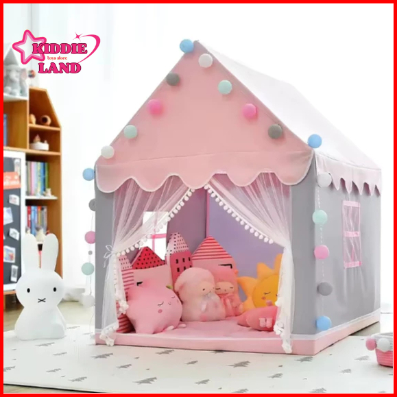 Tenda Bermain Anak Jumbo Model Rumah Dekorasi Portable Dengan Varian Warna Pink Biru Dan Kuning