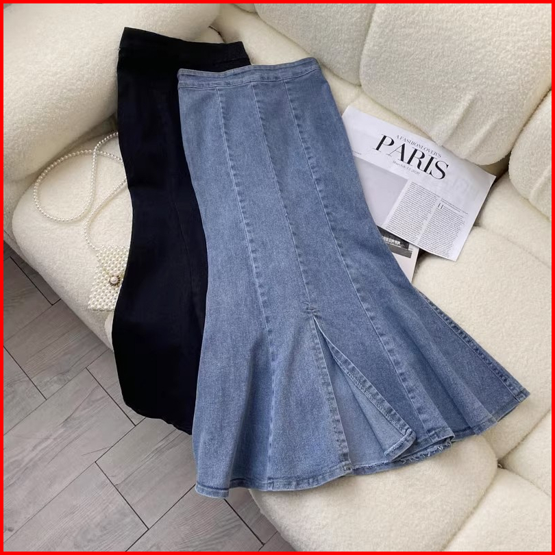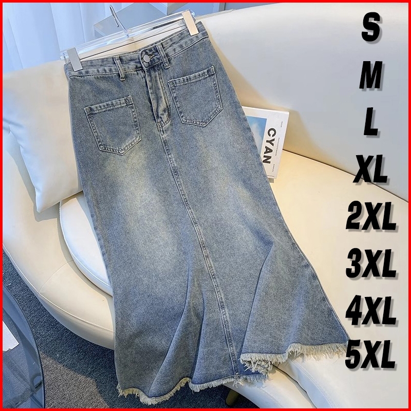 Kekinian.factory Ready Stok 5xl Jumbo Rok Duyung Jeans Korean Style Rok Jeans Wanita Panjang 7 8 Warna Hitam Retro Denim