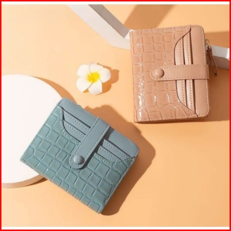 Dompet Lipat Wanita Silvania Croco Leather Glossy Slot Kartu Dan Slot Koin