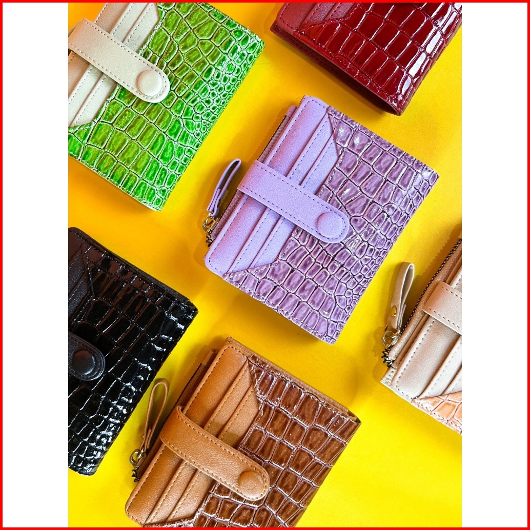 Mna Dompet Lipat Wanita Silvania Croco Leather Glossy Slot Kartu Dan Slot Koin