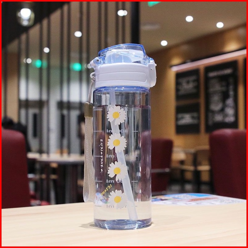 Dellune.store - Botol Minum Plastik Tumblr Daisy Transparant Ukuran 600ml Botol Lucu Murah