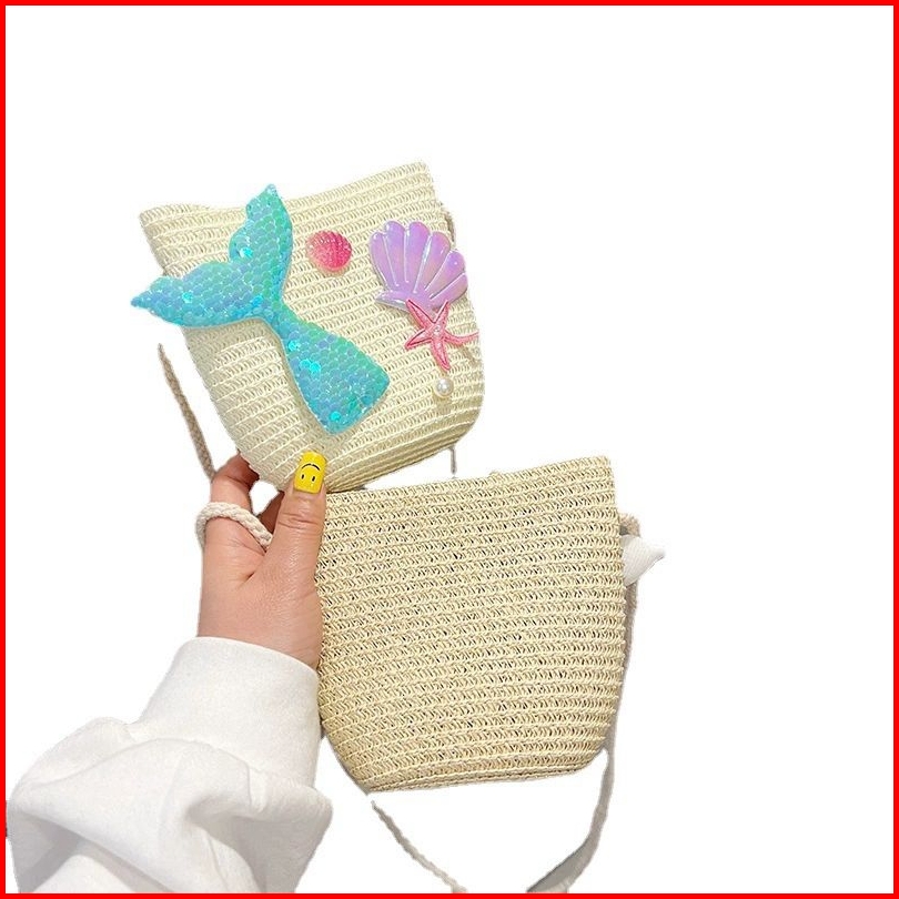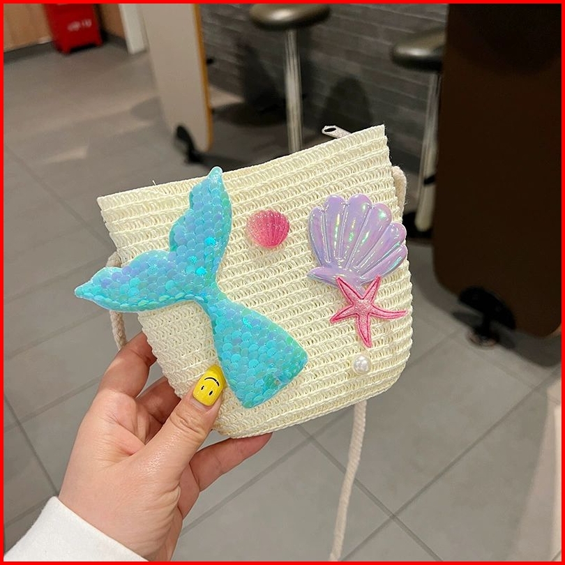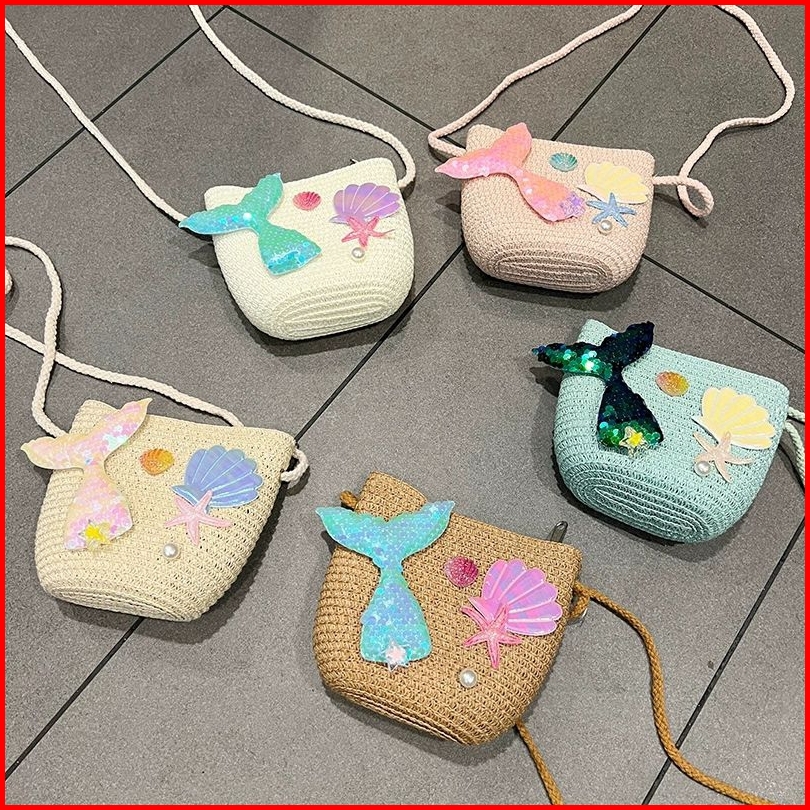 15 Shop --- Tas Ekor Mermaid Glitter Tas Selempang Sling Bag Tas Jerami Anak Perempuan Slingbag Fashion Anak Gaya Korea