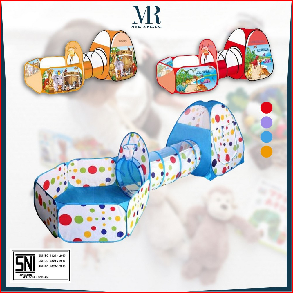 Tenda Terowongan Mainan Anak 4in1 Dengan Kolam Dan Ring Basket Mainan Keranjang Mandi Bola Anak Tenda Anak Mr M6