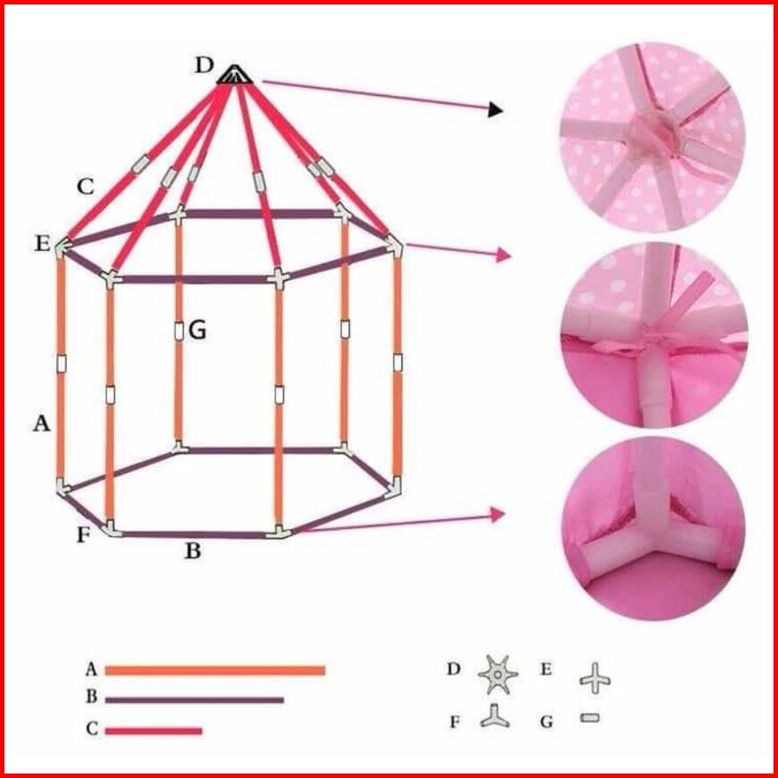 Tenda Anak Tenda Mainan Anak Princess Model Rumah Indoor Outdoor Portable Castle 6 Sudut