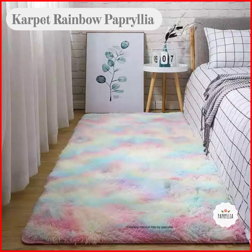 Krucils Store - Karpet Bulu Rasfur Karpet Lantai Bulu 100x150cm Rainbow