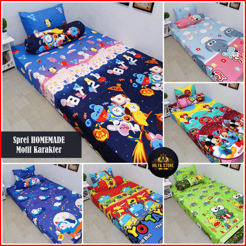 Sprei Homemade Motif Binatang Lucu Murah Ukuran 160x200 Dan 180x200 Doraemon Tayo Hewan Binatang Karakter Lucu Bahan Kat