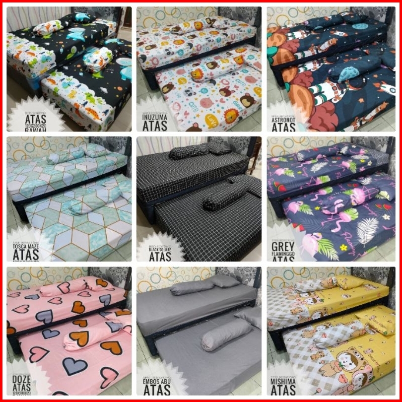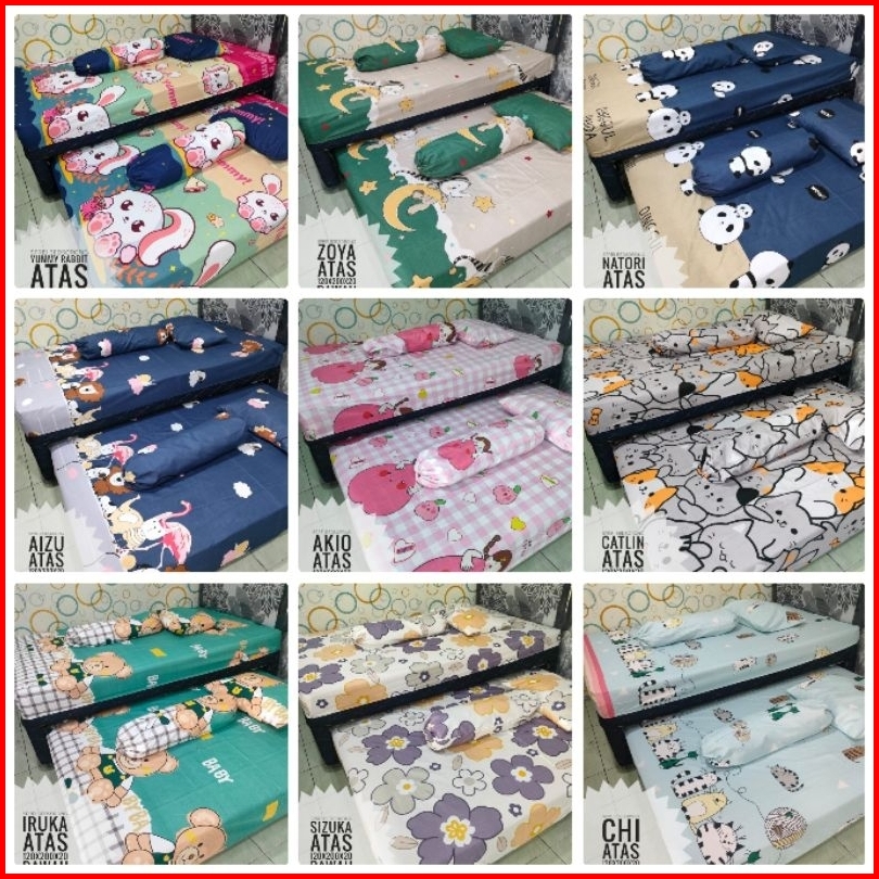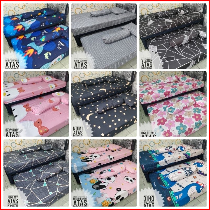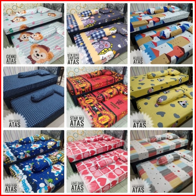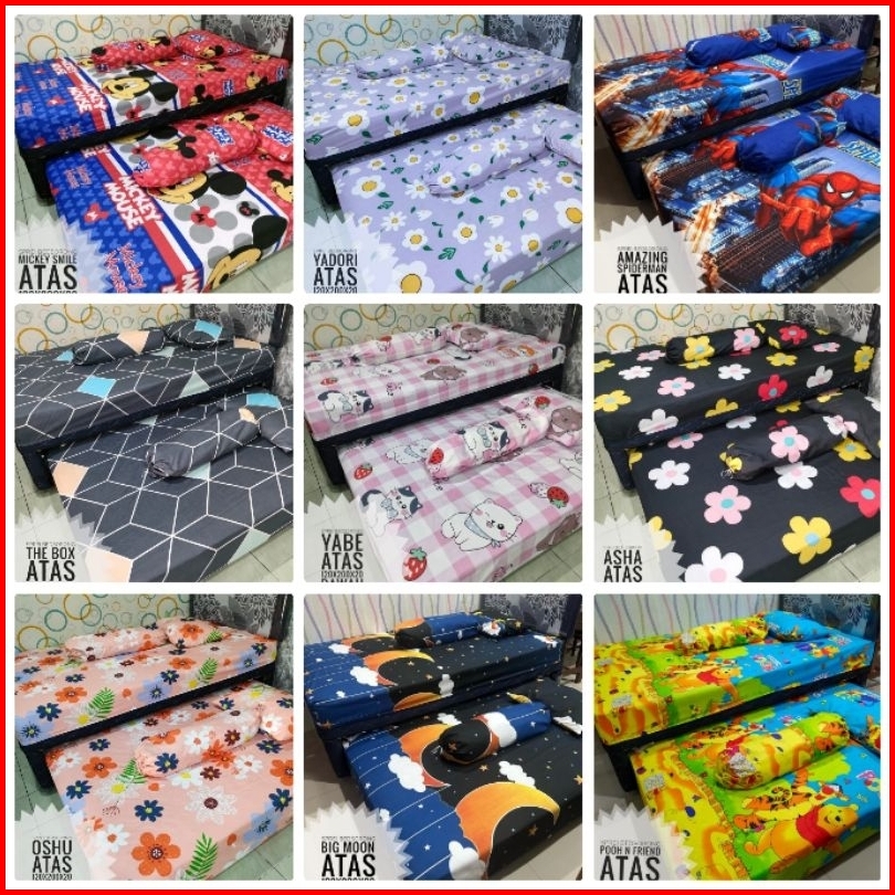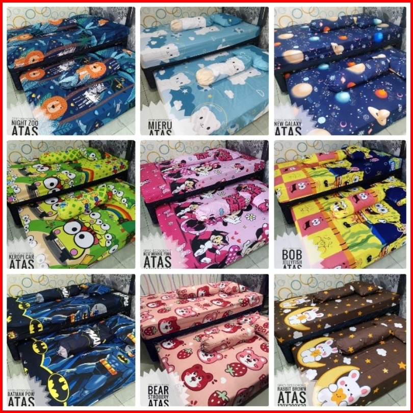 Sprei Bed Sorong Atas Bawah Single 120 200 Karakter Dino Spiderman Miki Superman Batman Excavator Hellokitty Singa Simba