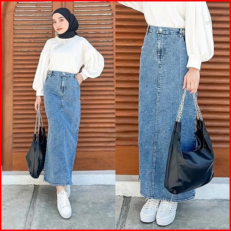 Highwaist Rok Jeans Theana Skirt Maxi Standar Jumbo