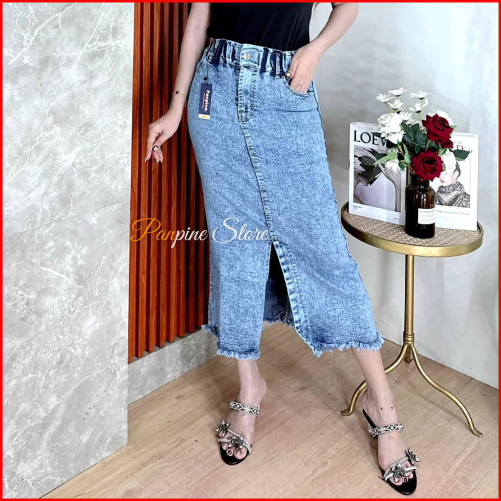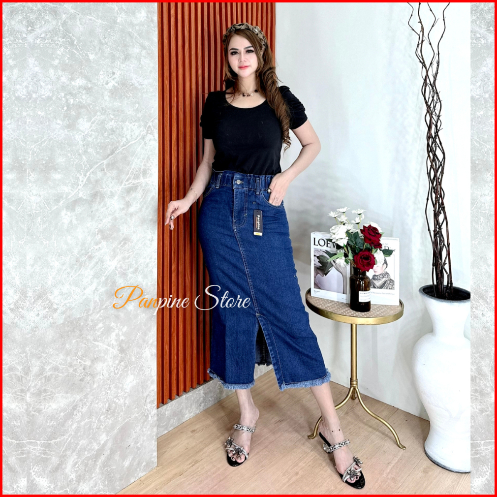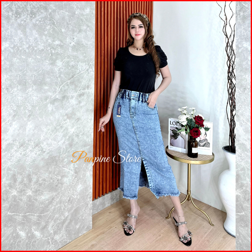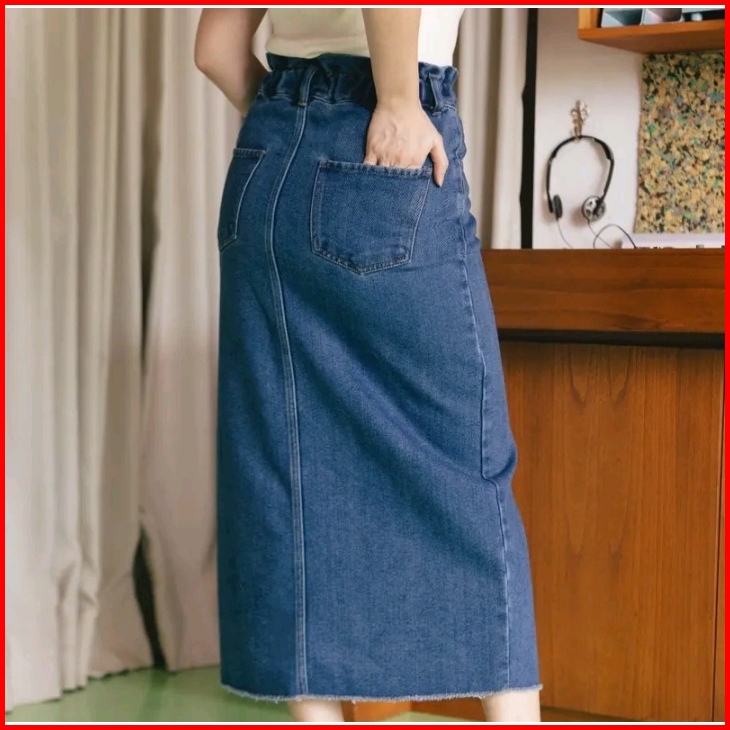Rok Jeans Wanita Highwaist Skirt Strech Coral Skirt Jeans Belah Depan Tebal Dan Melar