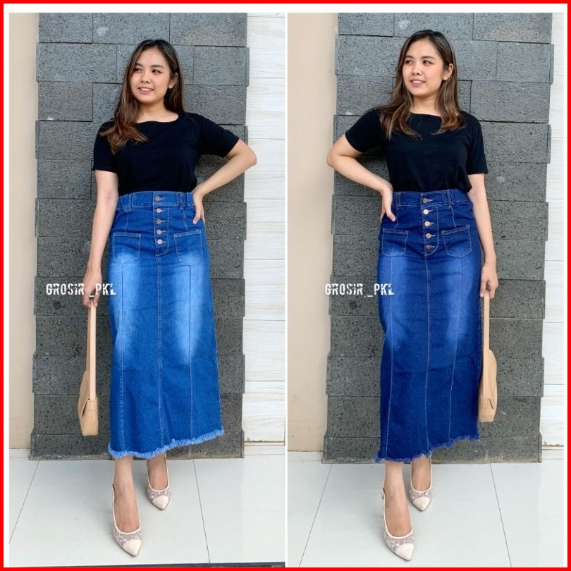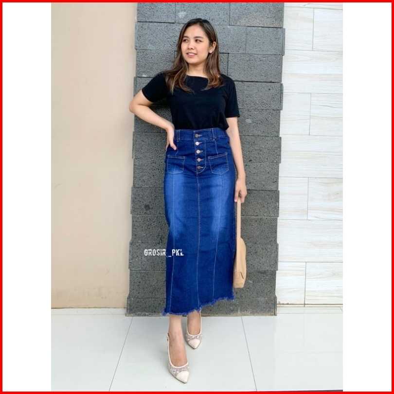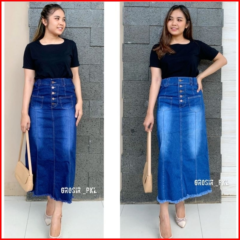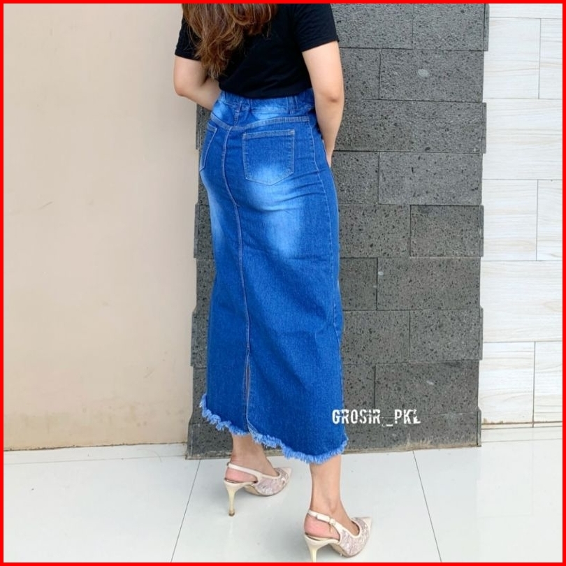 Rok Welona Jeans Stretch Premium Rok Panjang K.5 Rawis Tebal