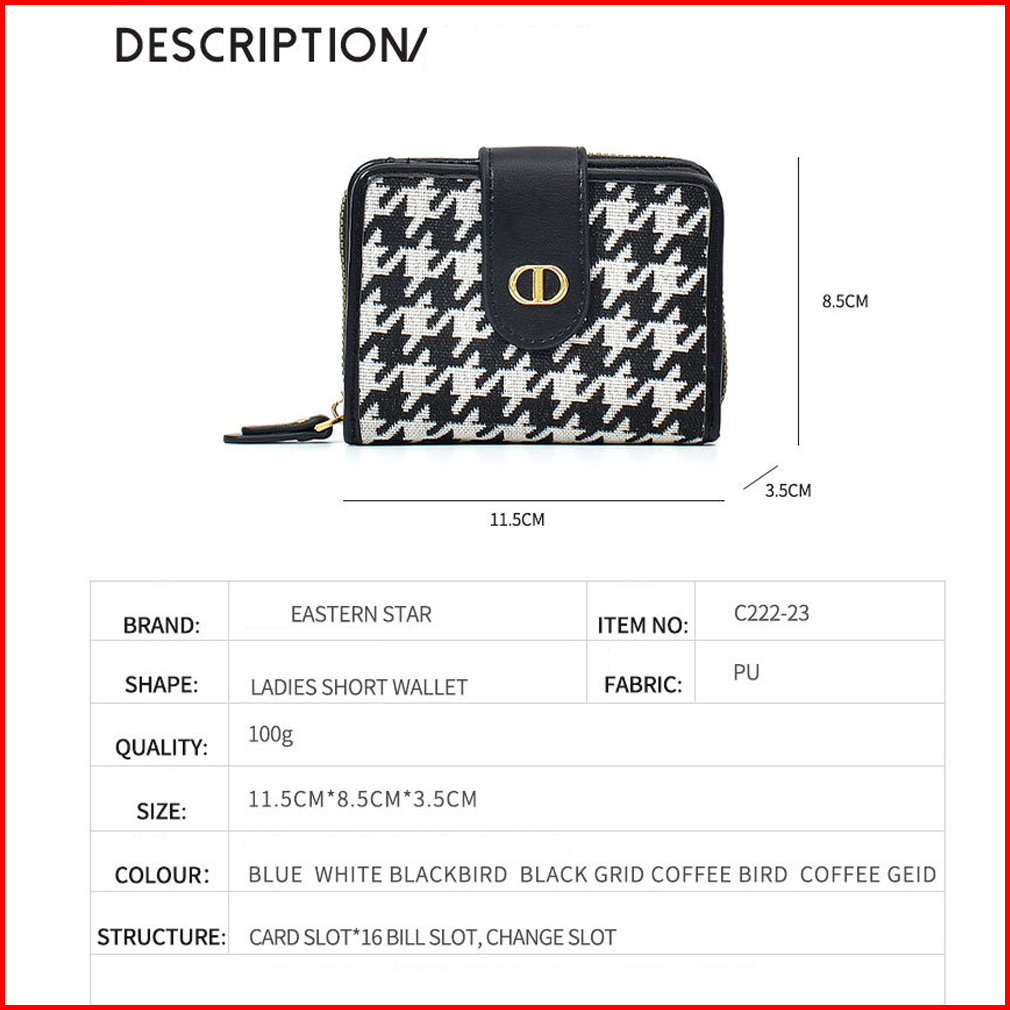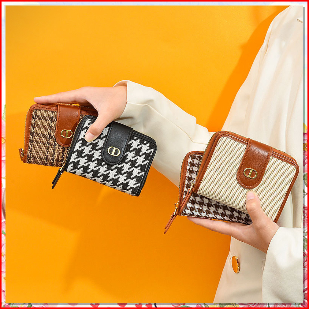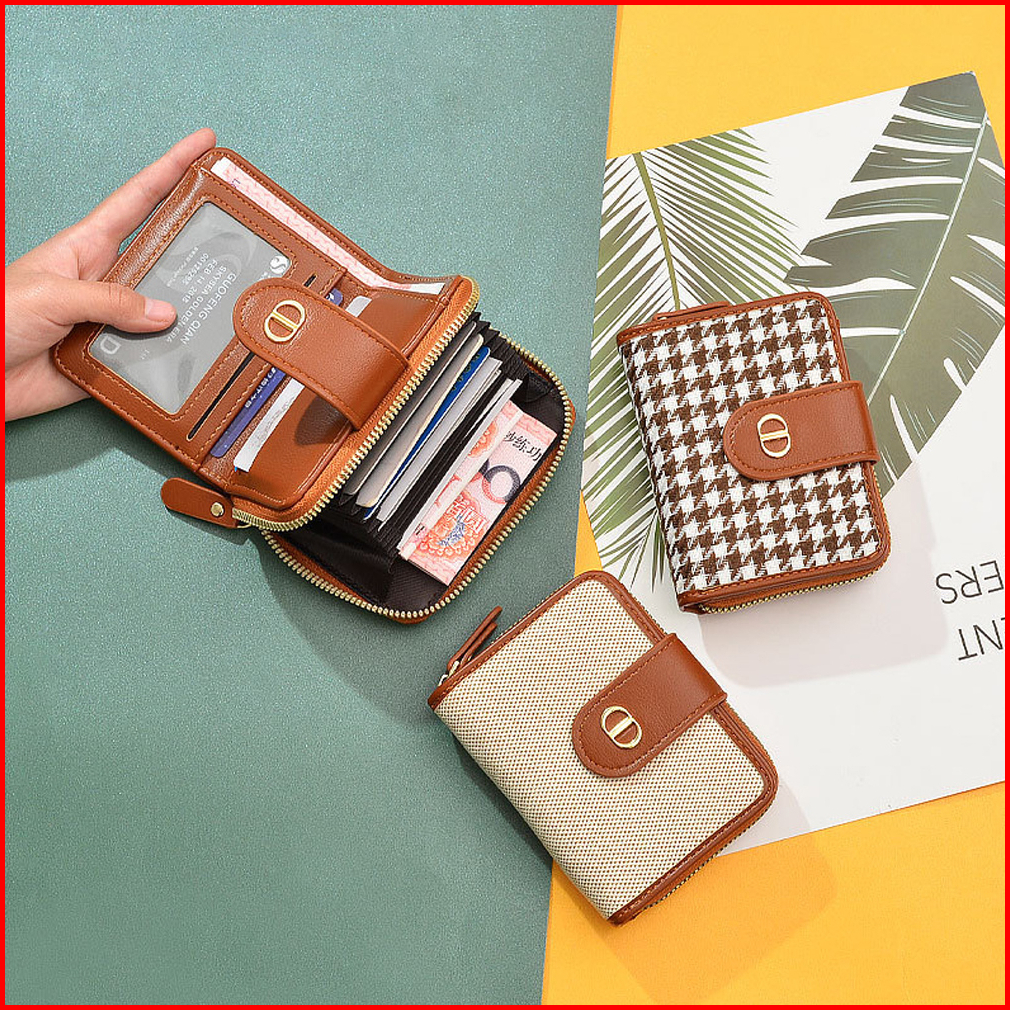 Dompet Pendek Lipat Dua Wanita Dompet Koin Ritsleting Mini Slot Kartu
