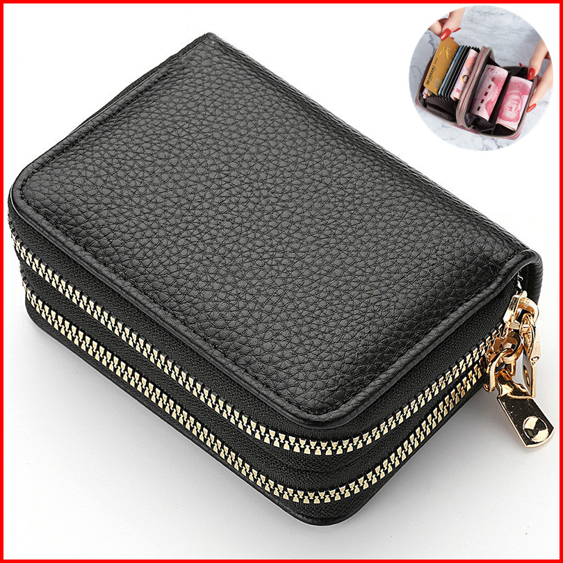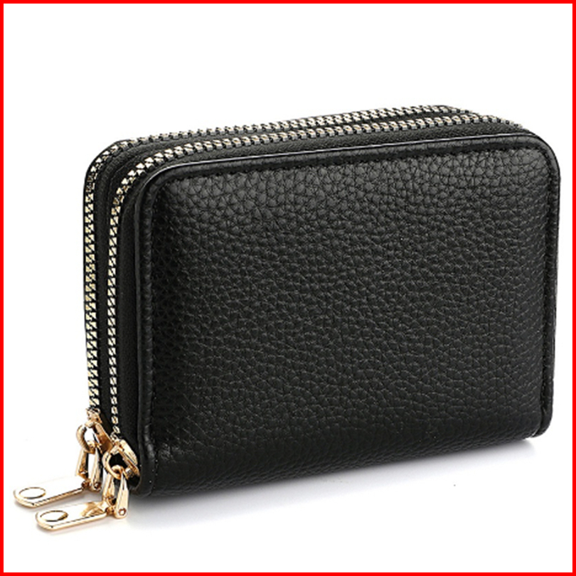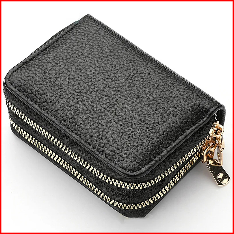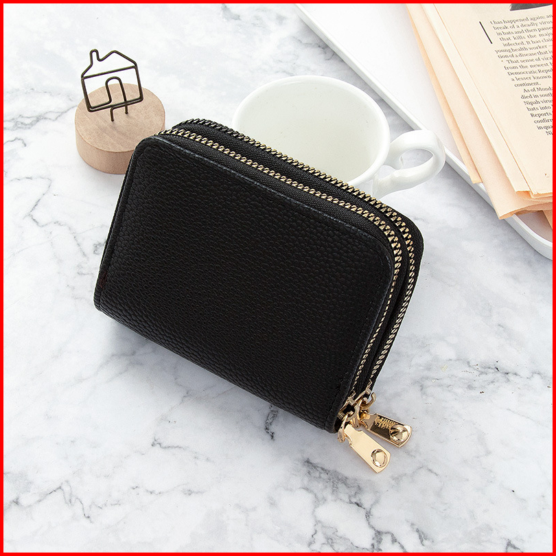 2 Resleting Dompet Lipat Wanita Kulit Hitam Lenia Kecil Slot Kartu Uang Koin Mini Dompet