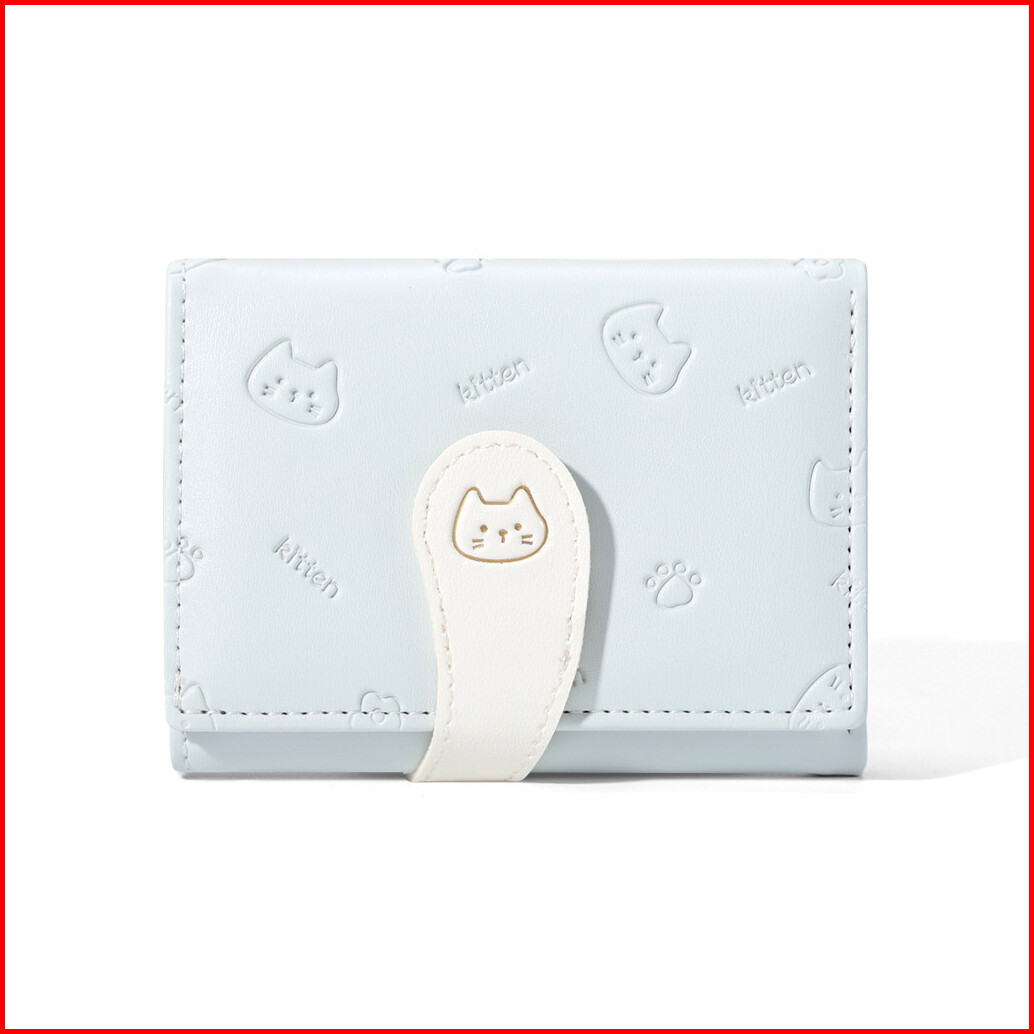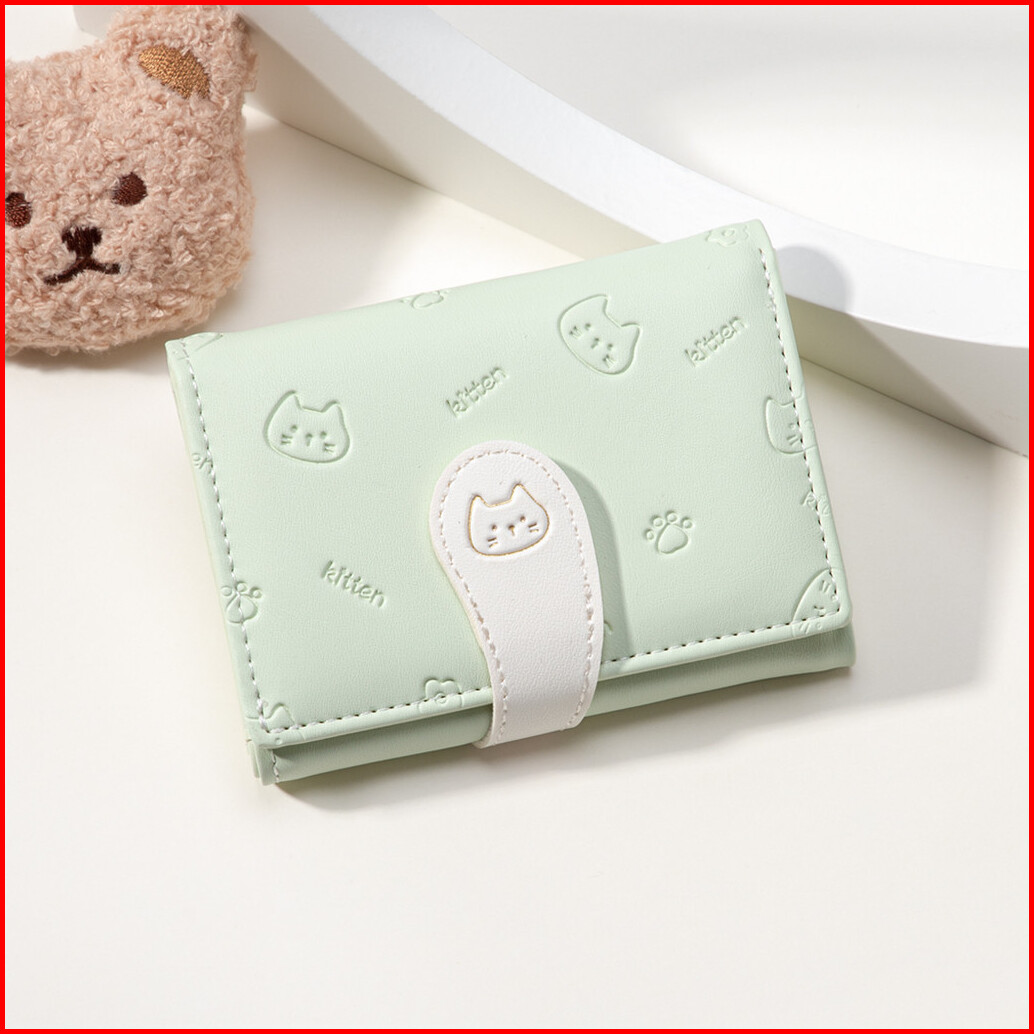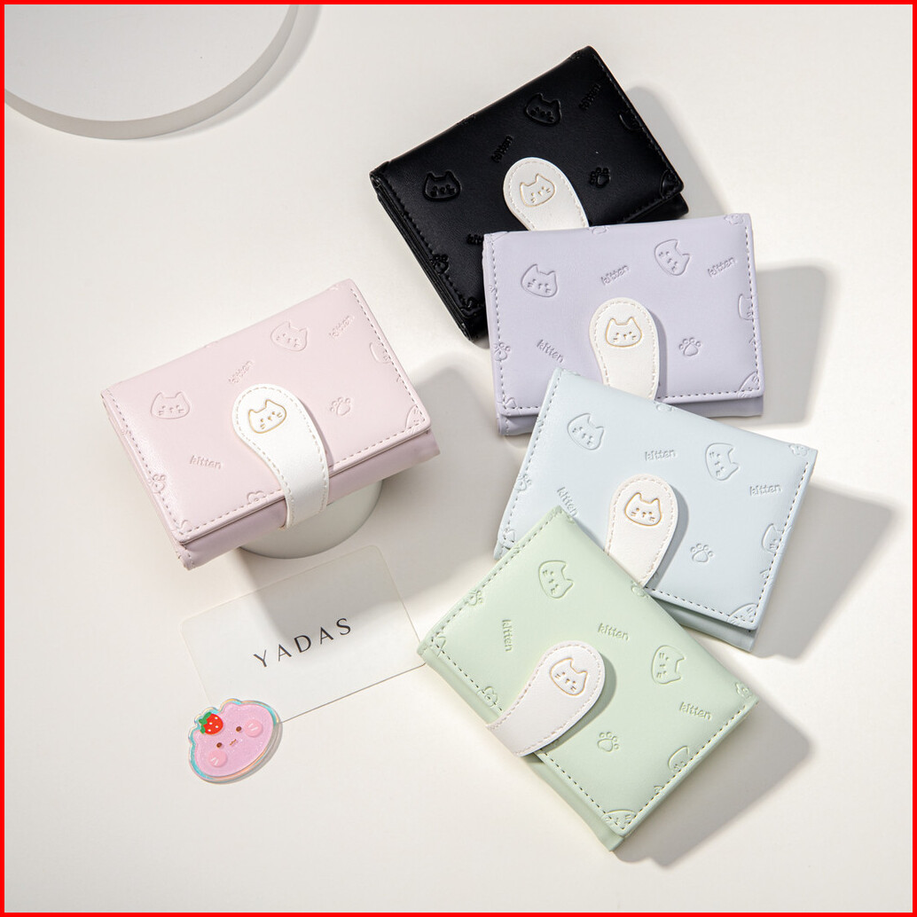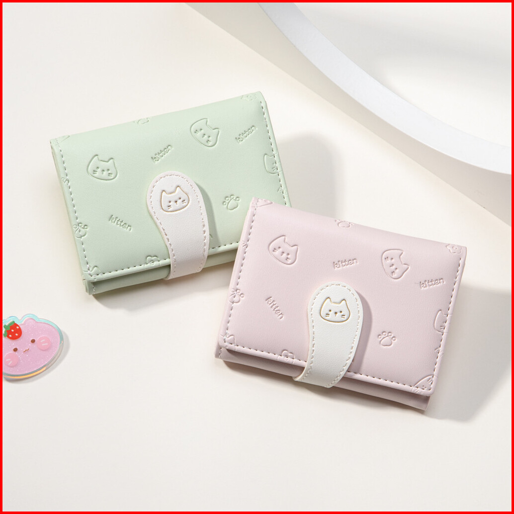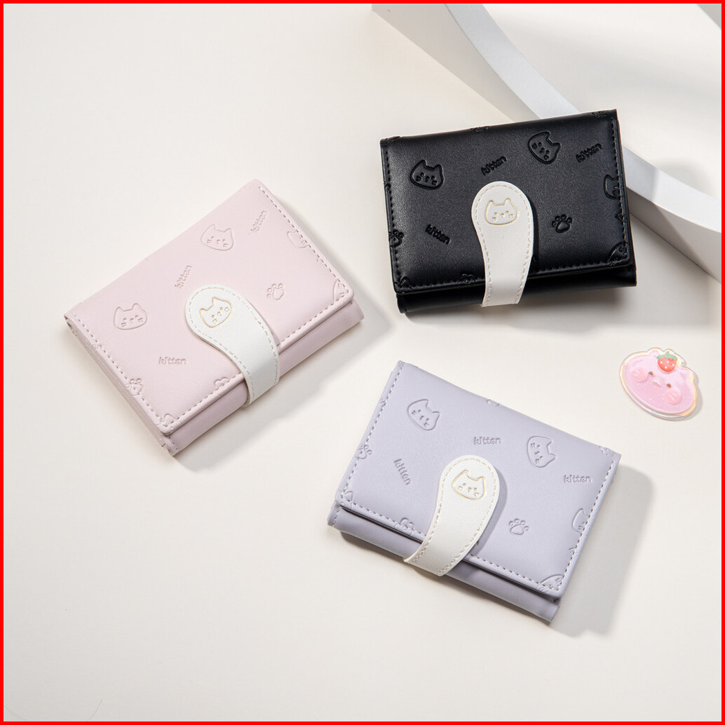 Dompet Multi Kartu Wanita Lucu Gaya Korea Baru Dompet Koin Tiga Kali Lipat Pu Gesper Fashion Pendek Sederhana Dompet Mul