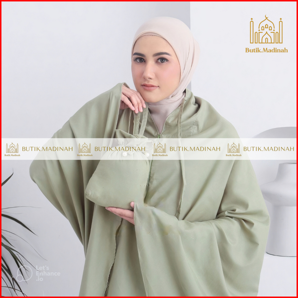 Butik.madinah Mukena Dewasa Traveling Mini Pouch 2in1 Resleting Polos Naira Ayanaa Katun Mikro Premium Mewah Lato-lato L